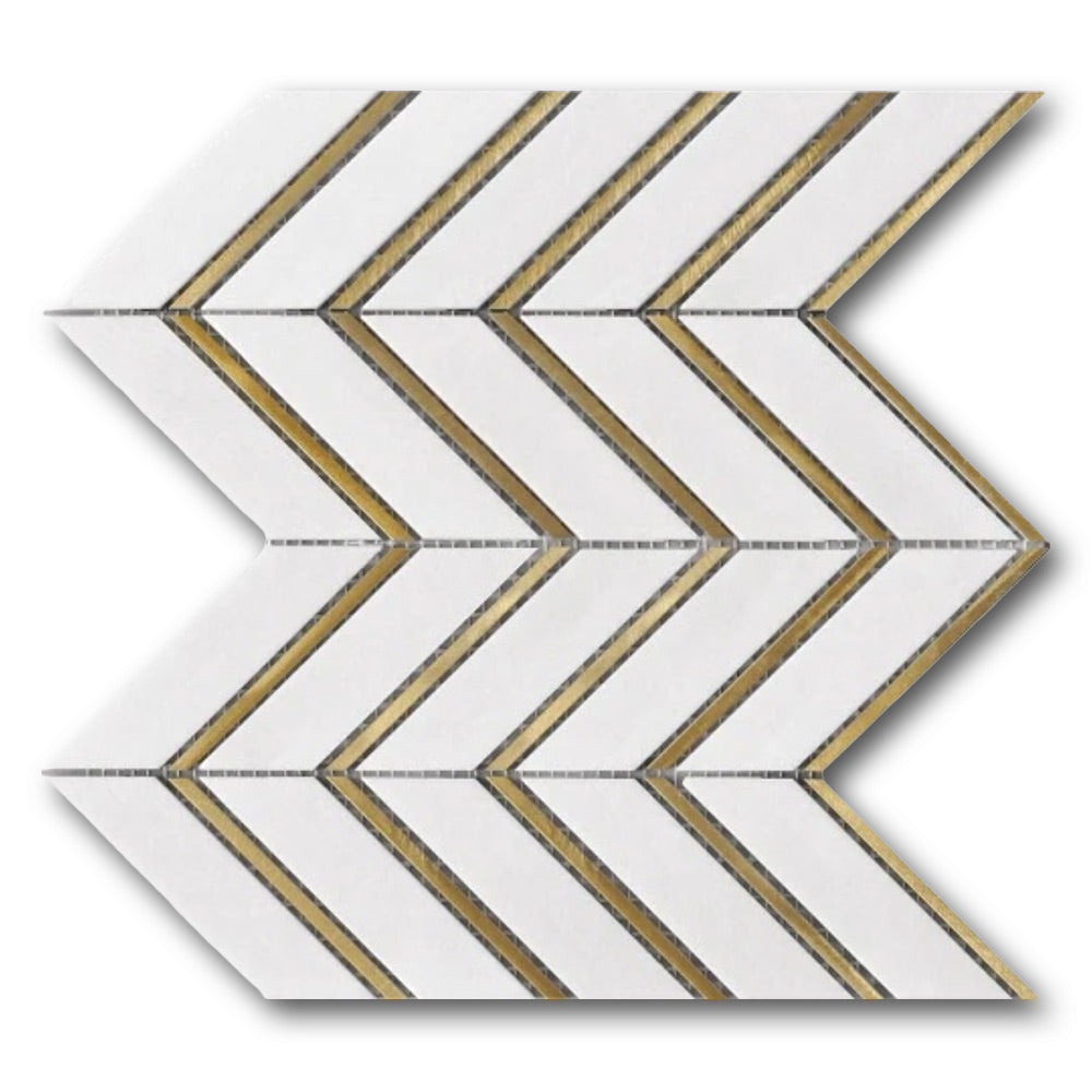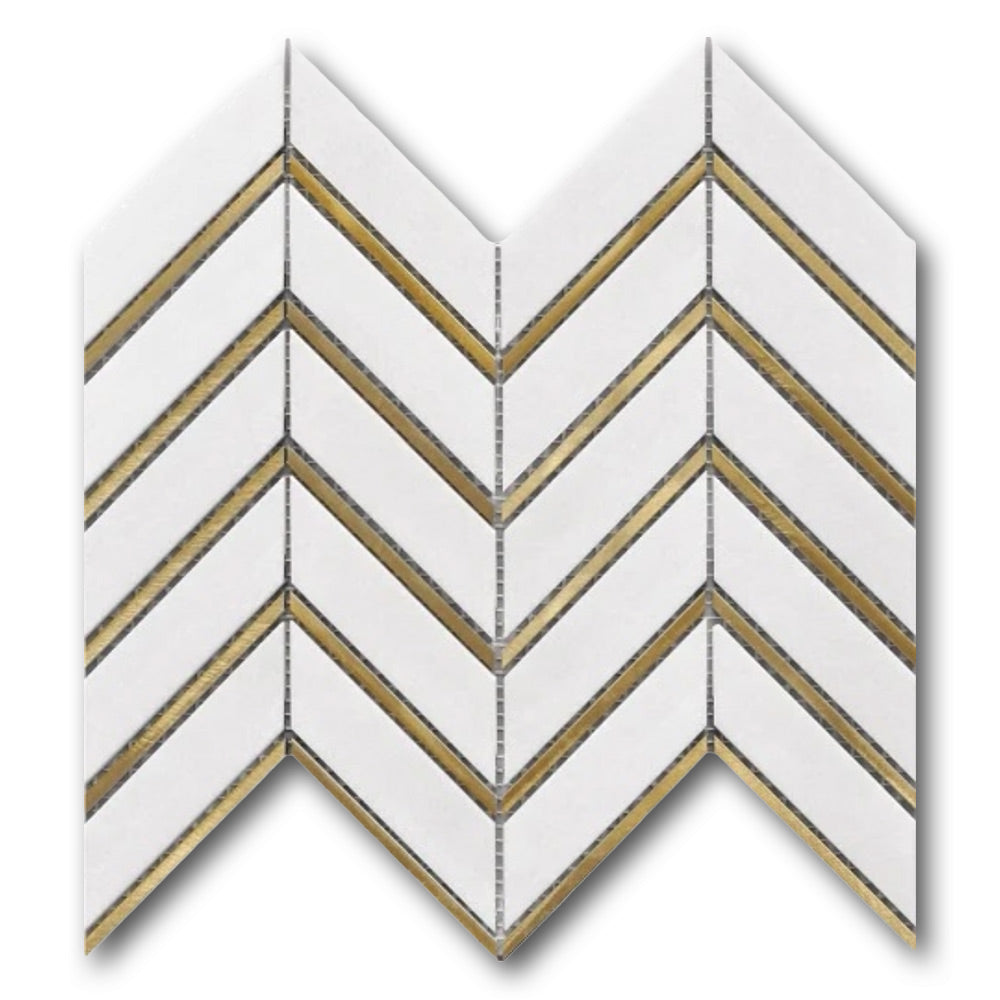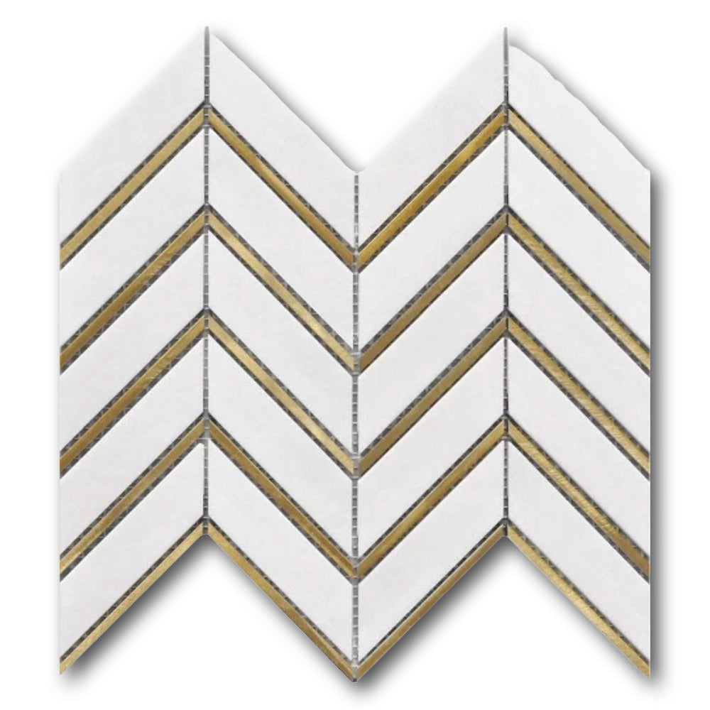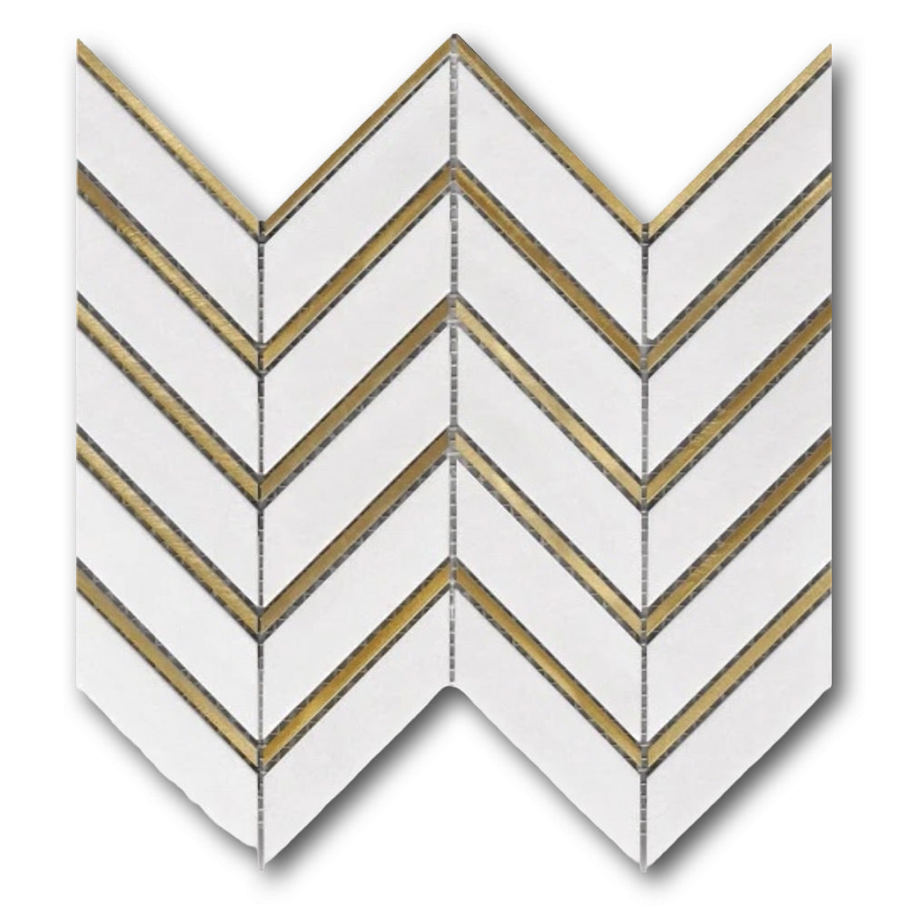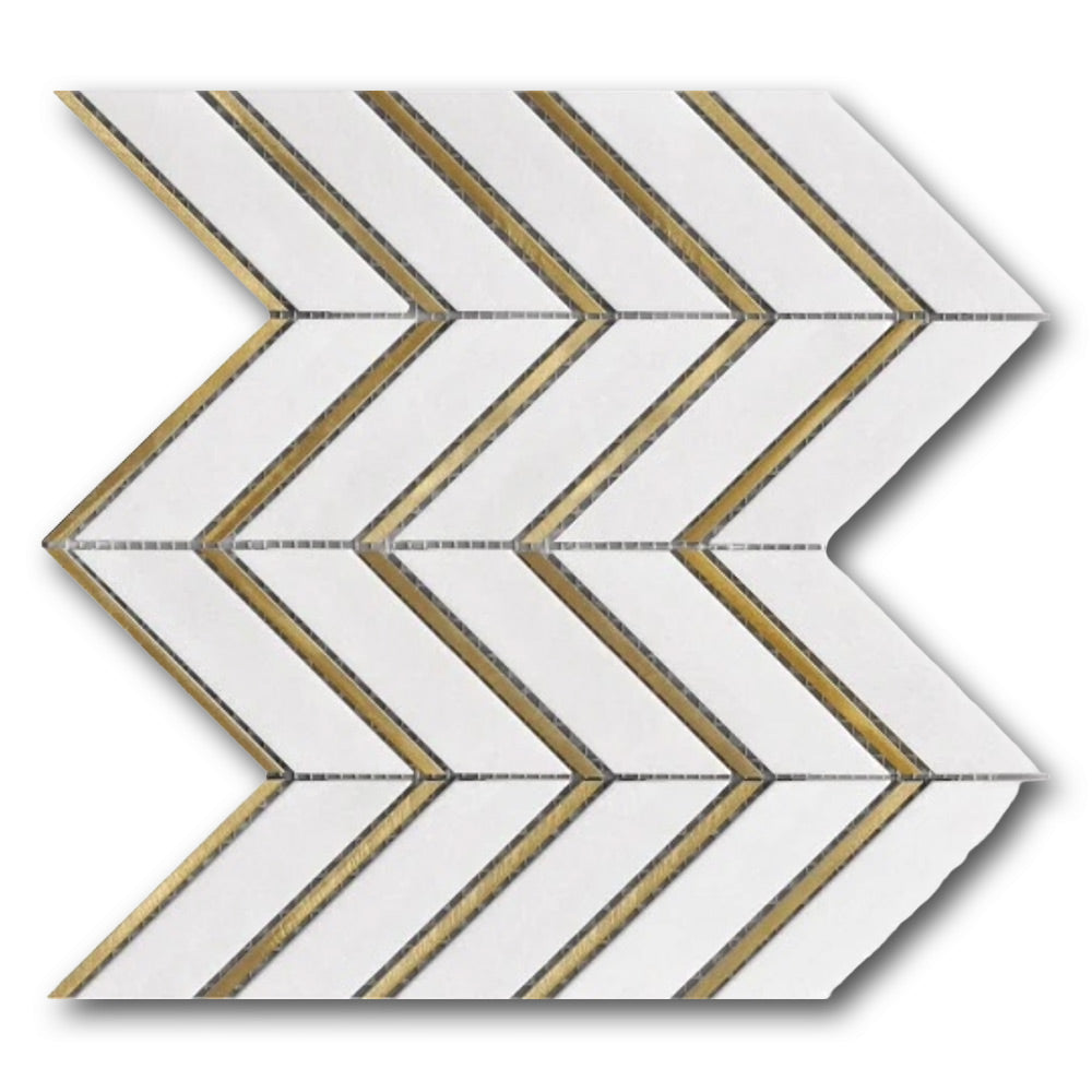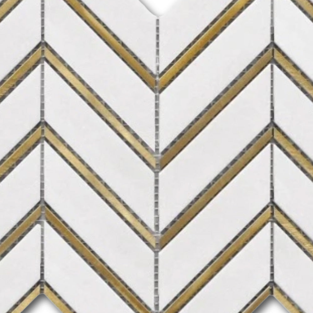 Mineralis Thassos Metal Polished Chevron Stone & Glass Mosaic Tile