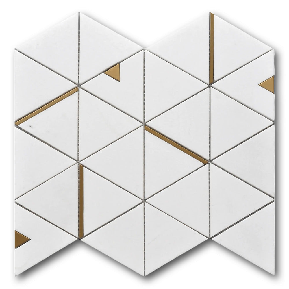 Mineralis Thassos Polished Triangle Stone & Glass Mosaic Tile