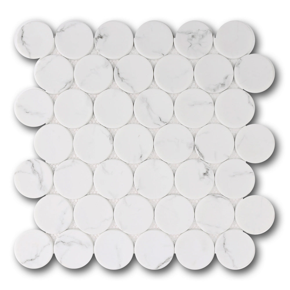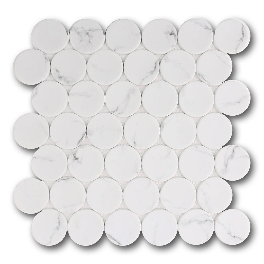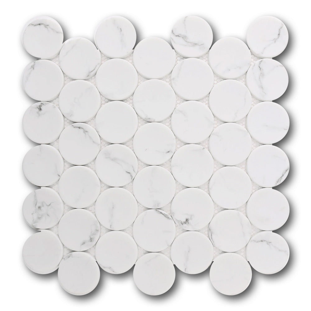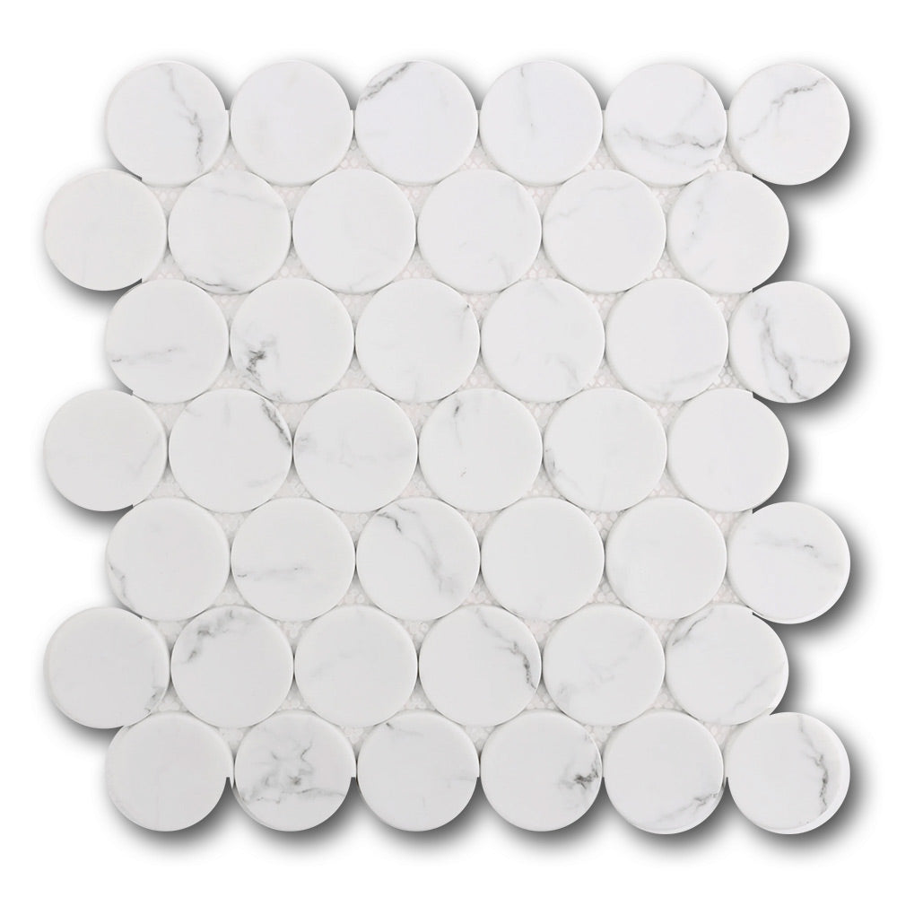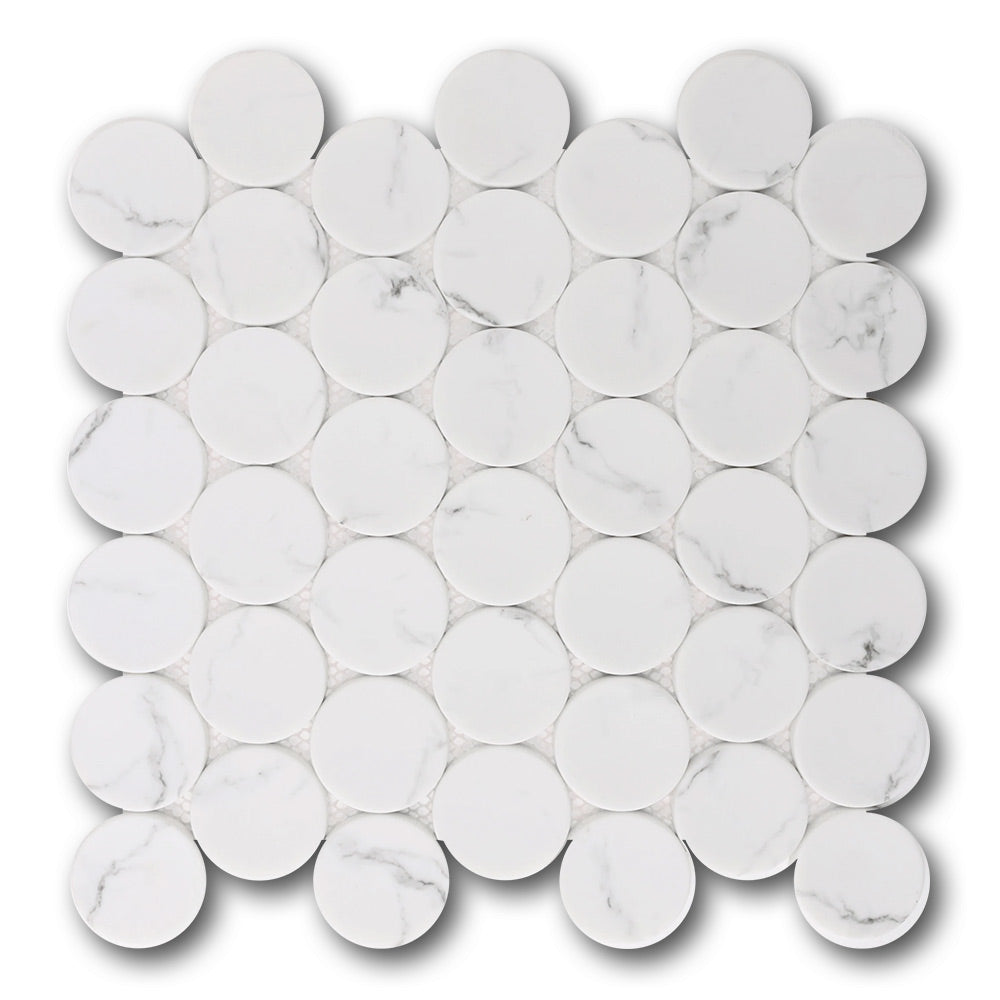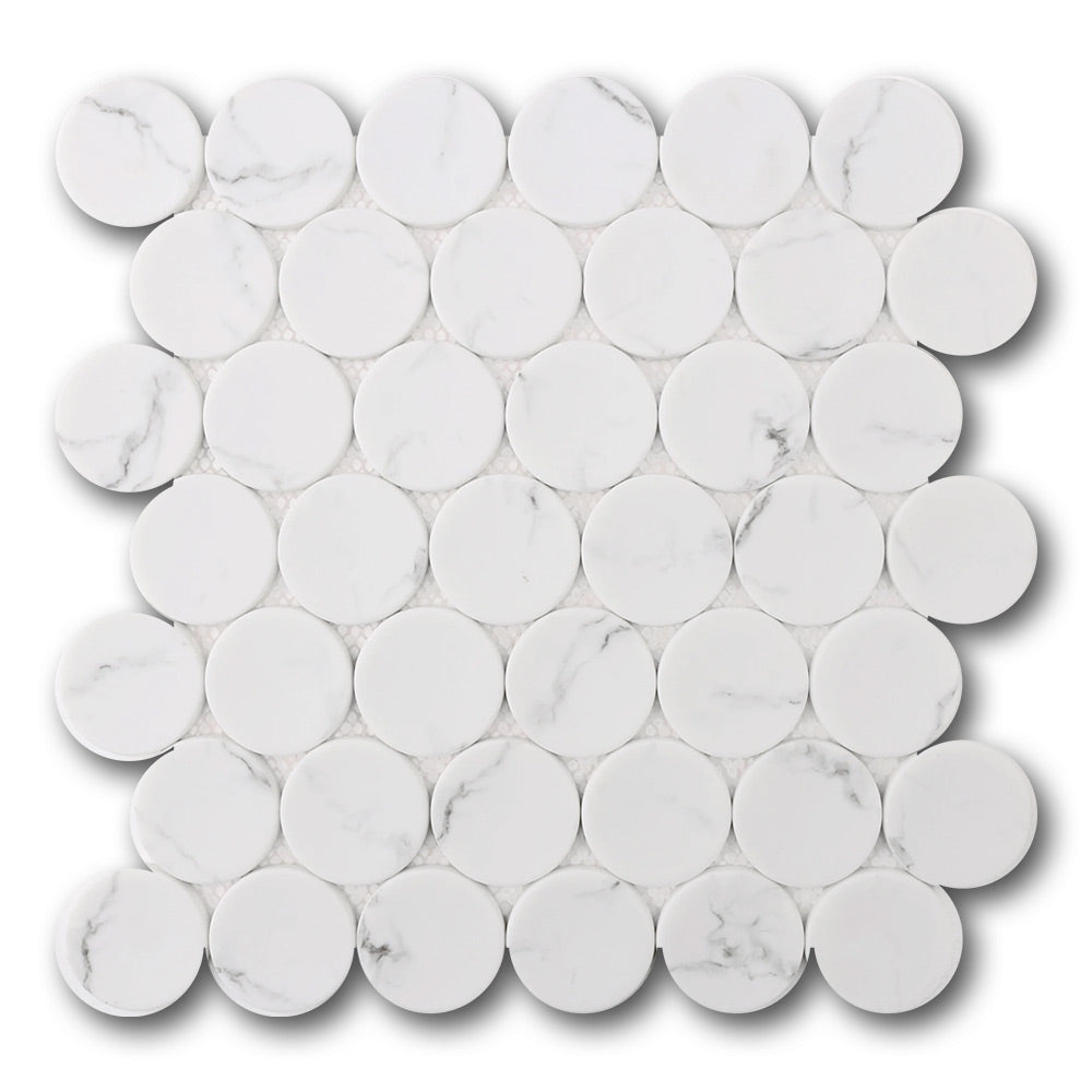 Mineralis White Statuary Matte Penny Stone & Glass Mosaic Tile