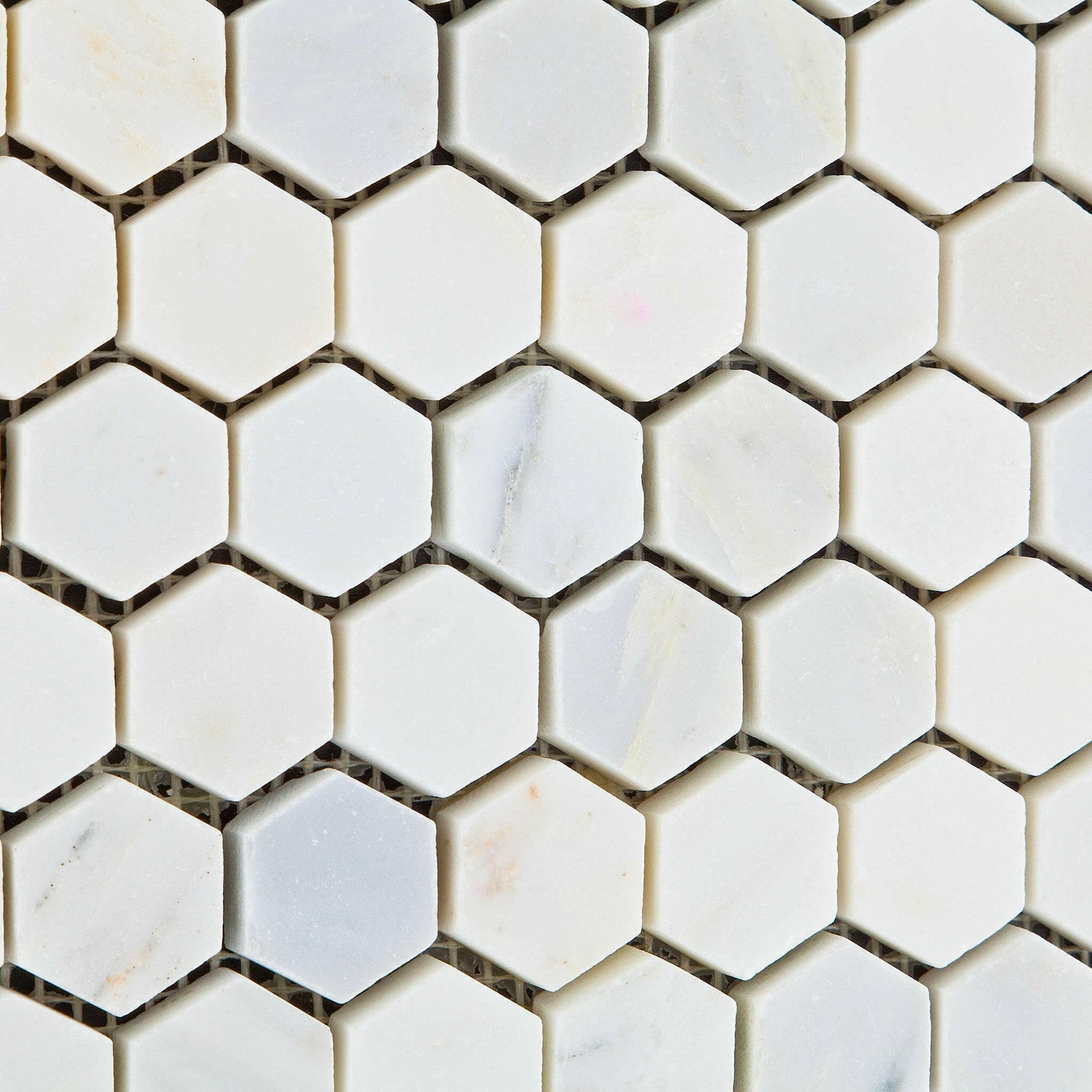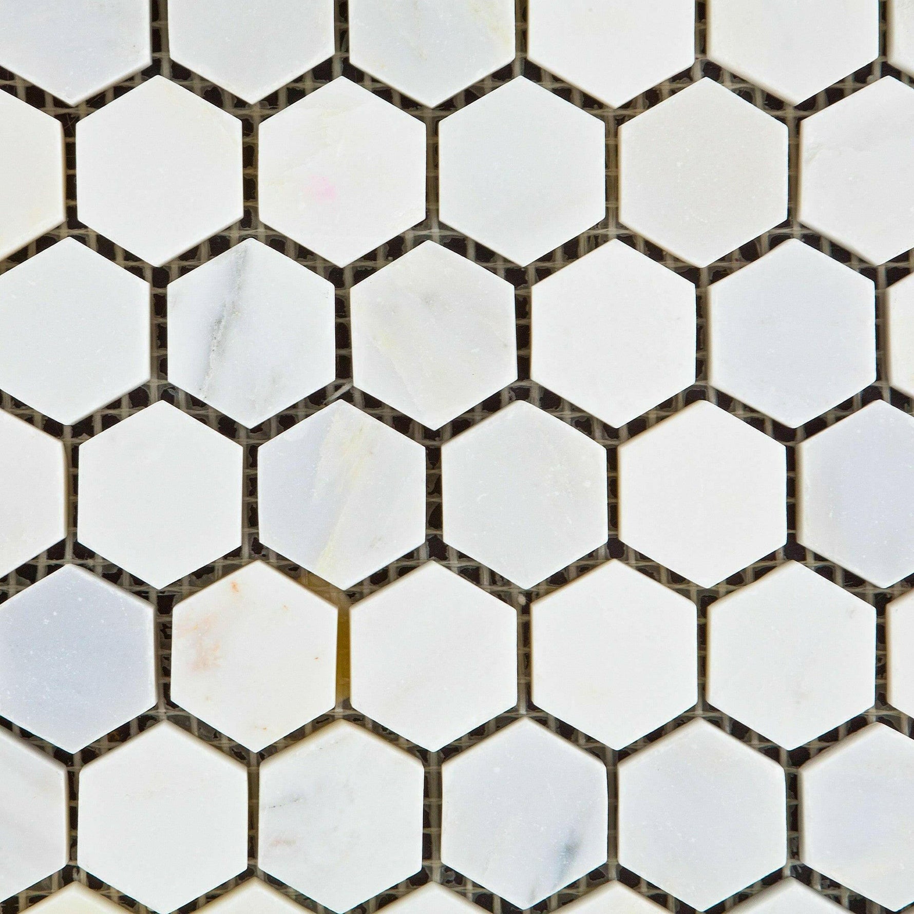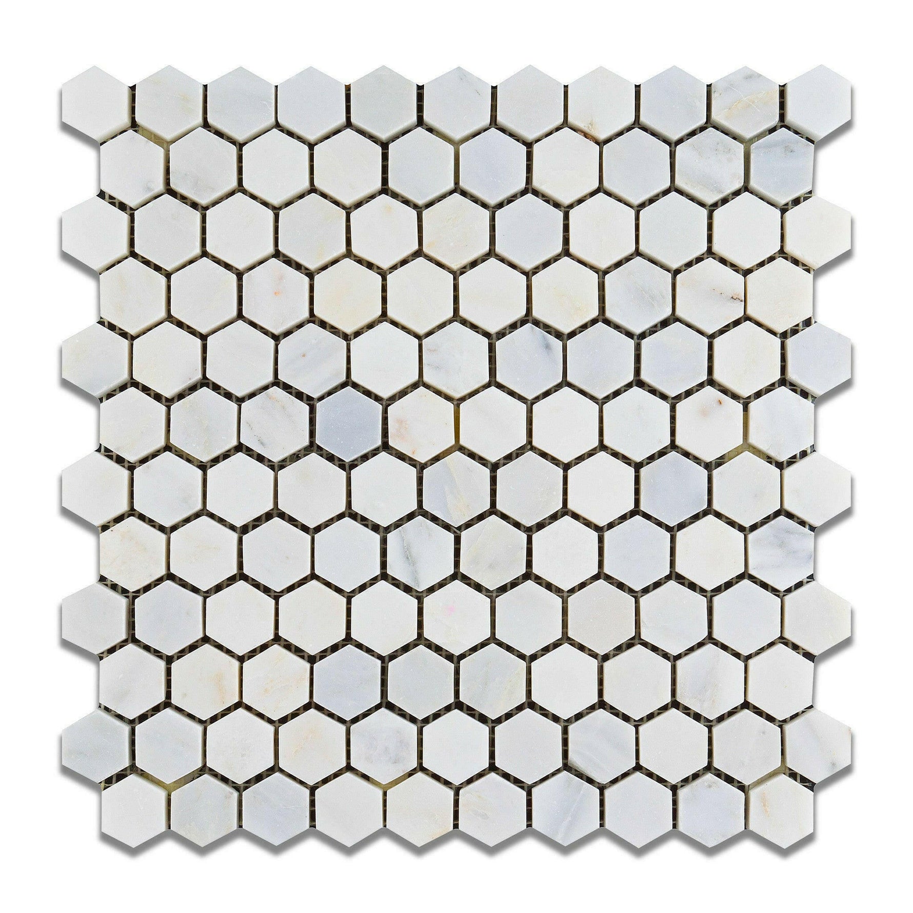 Oriental White / Asian Statuary Marble Honed 1" Mini Hexagon Mosaic Tile
