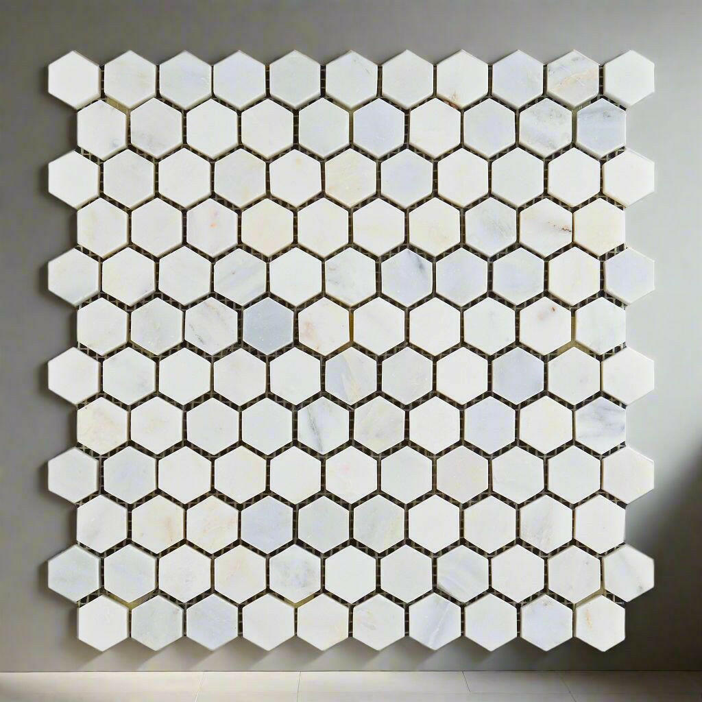 Premium Quality 1" ORIENTAL WHITE / ASIAN STATUARY MARBLE MINI HEXAGON HONED MOSAIC TILE