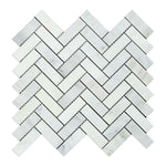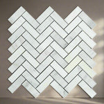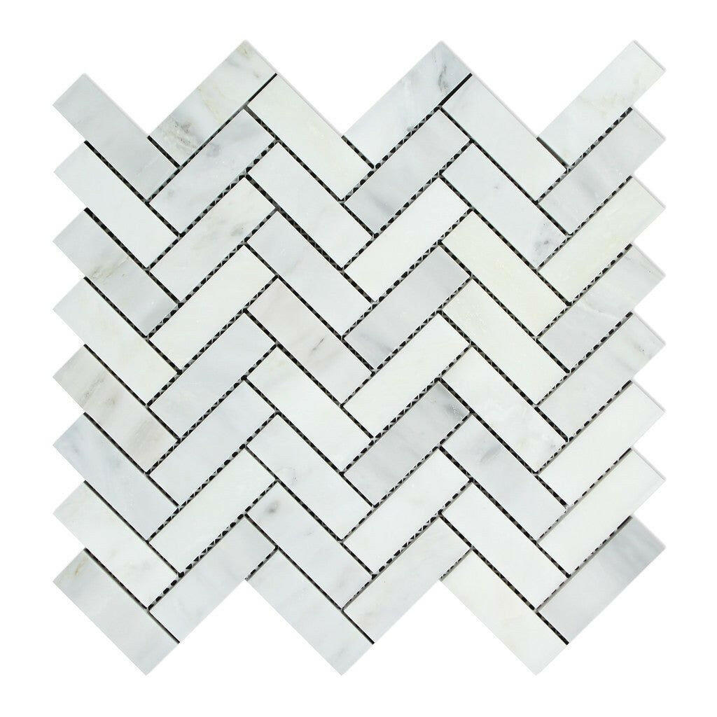 Oriental White / Asian Statuary Marble Honed 1x3 Herringbone Mosaic Tile