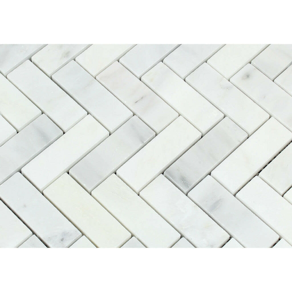 Premium Quality 1" X 3" ORIENTAL WHITE / ASIAN STATUARY MARBLE HONED HERRINGBONE MOSAIC TILE