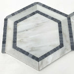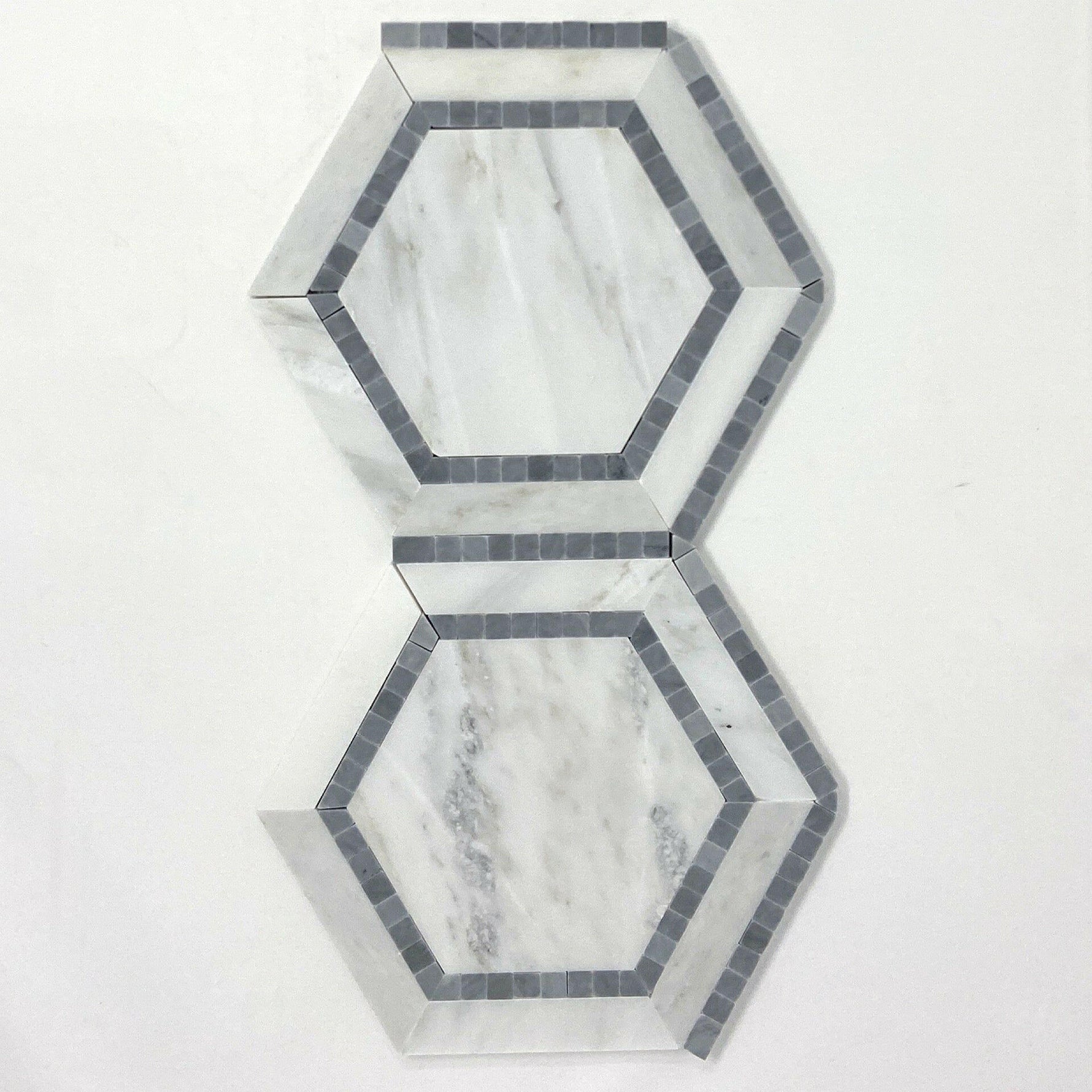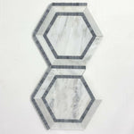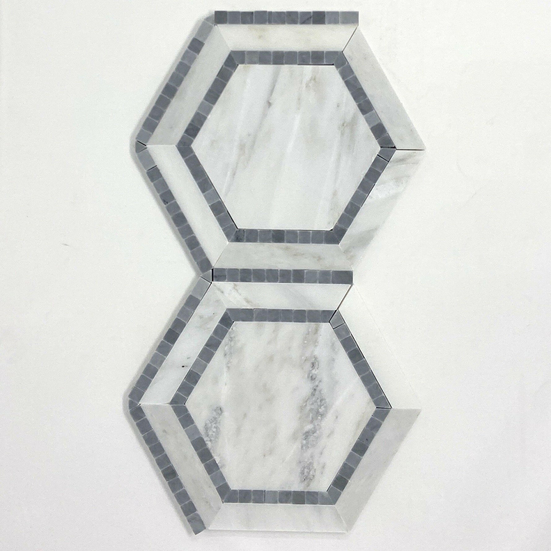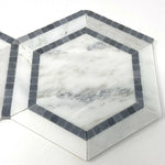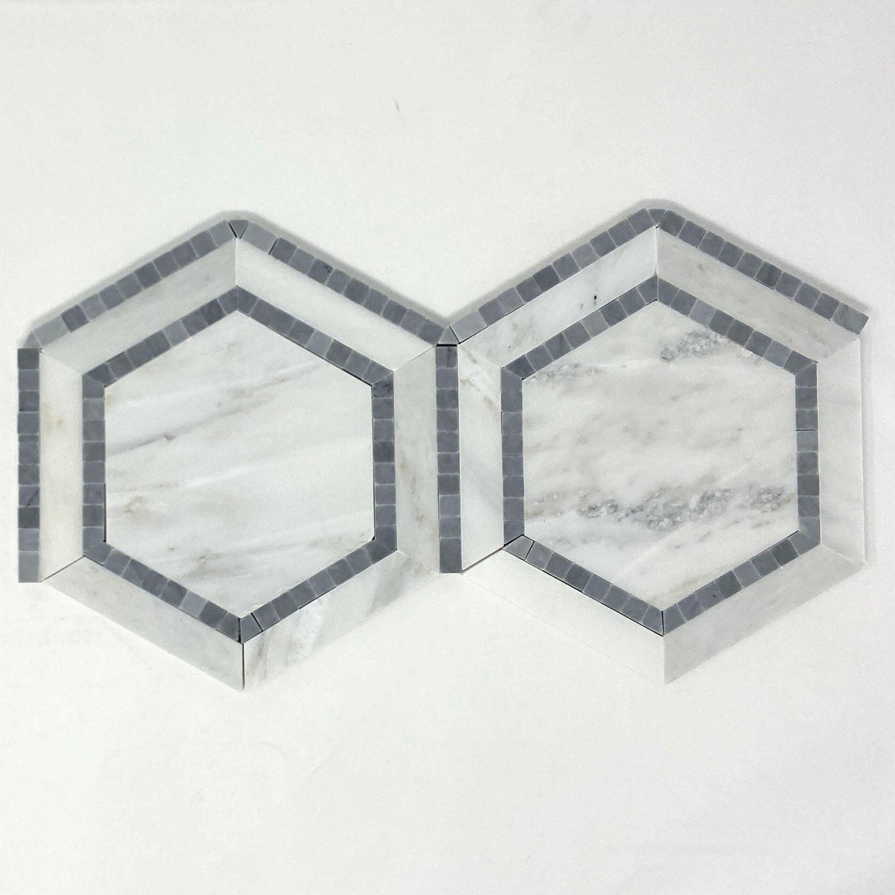 Oriental White / Asian Statuary Marble Honed 5" Hexagon Combination Mosaic Tile w/ Blue Border