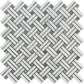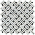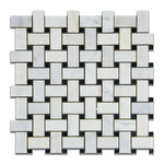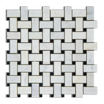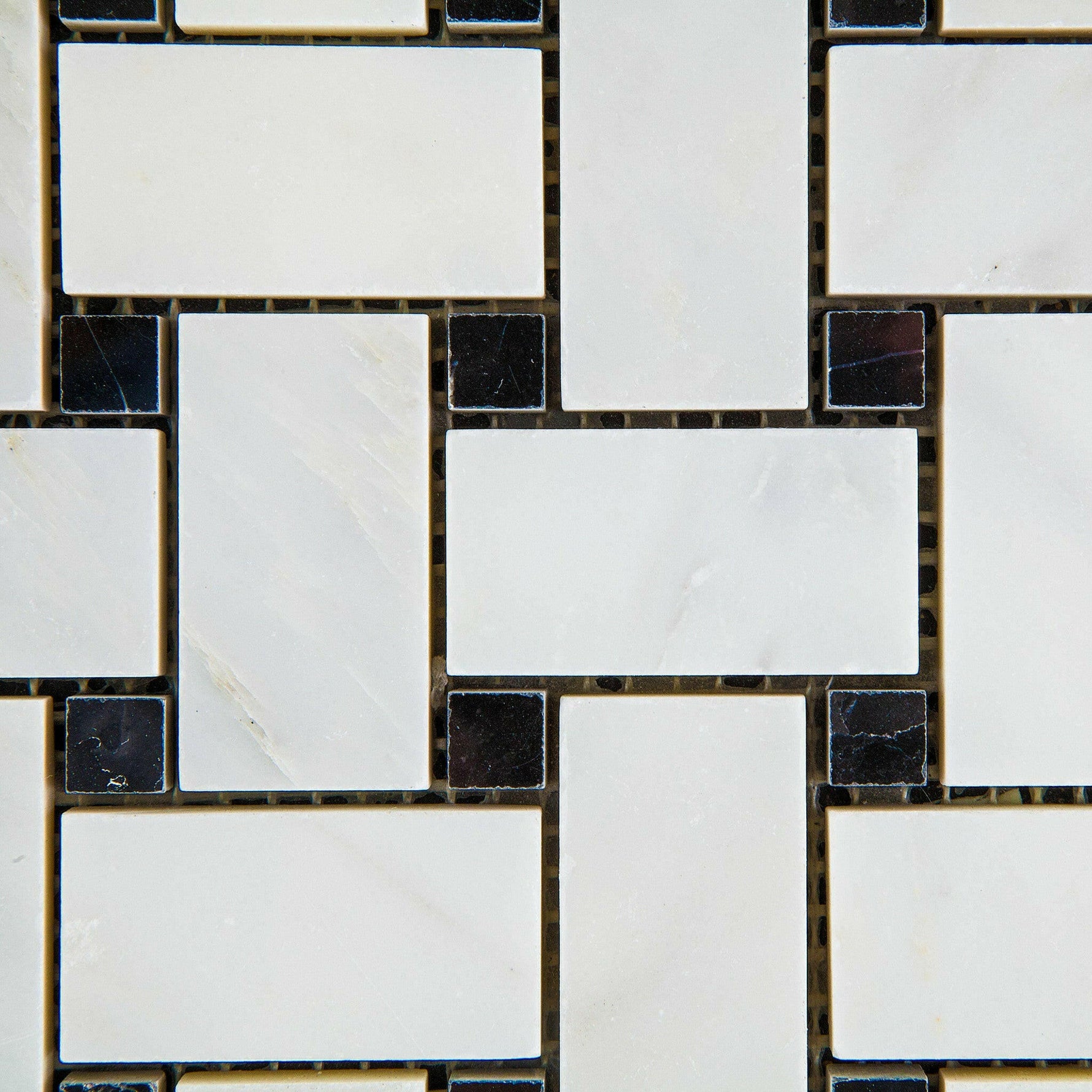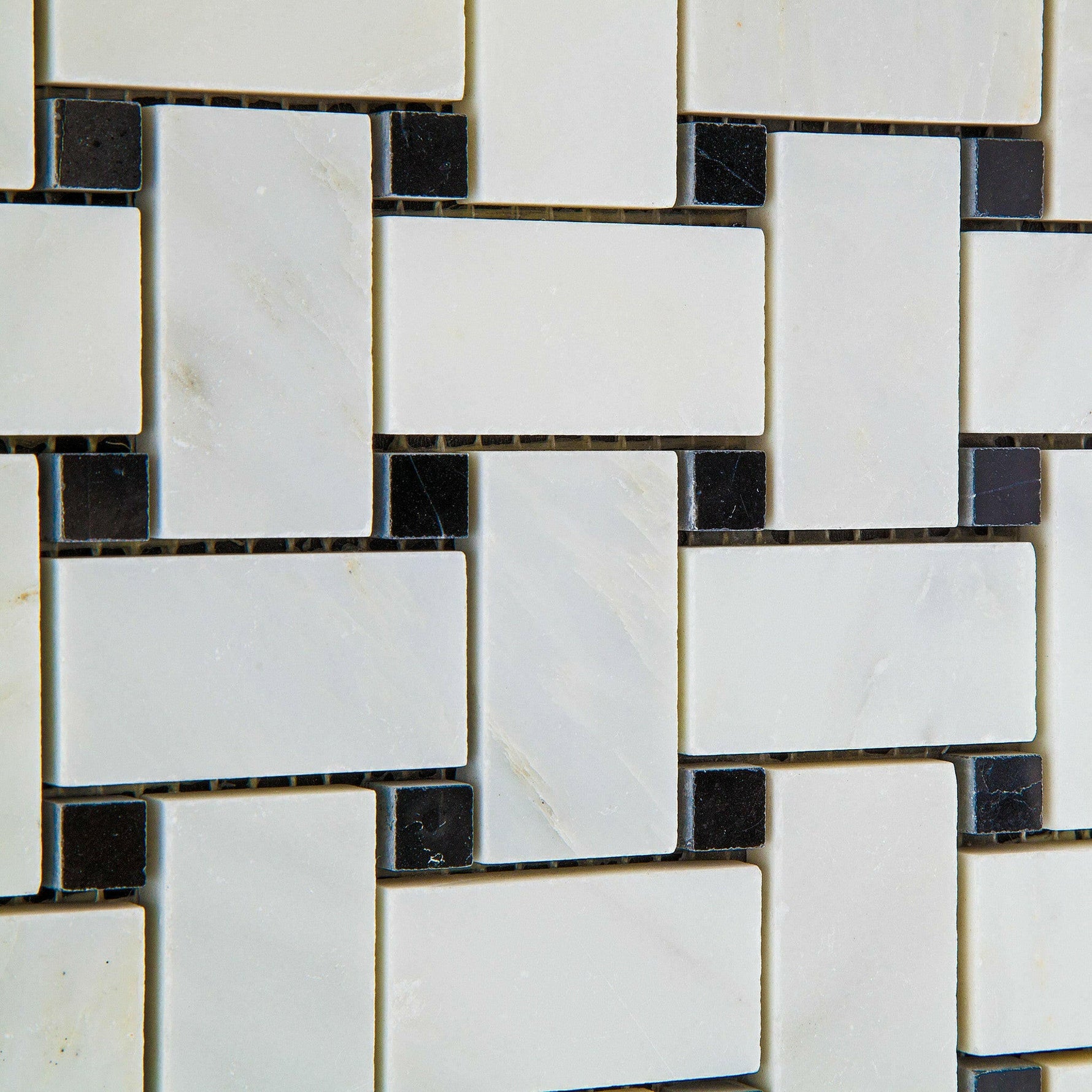Oriental White / Asian Statuary Marble Honed Basketweave Mosaic Tile w/ Black Dots