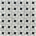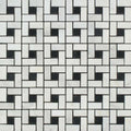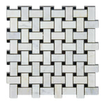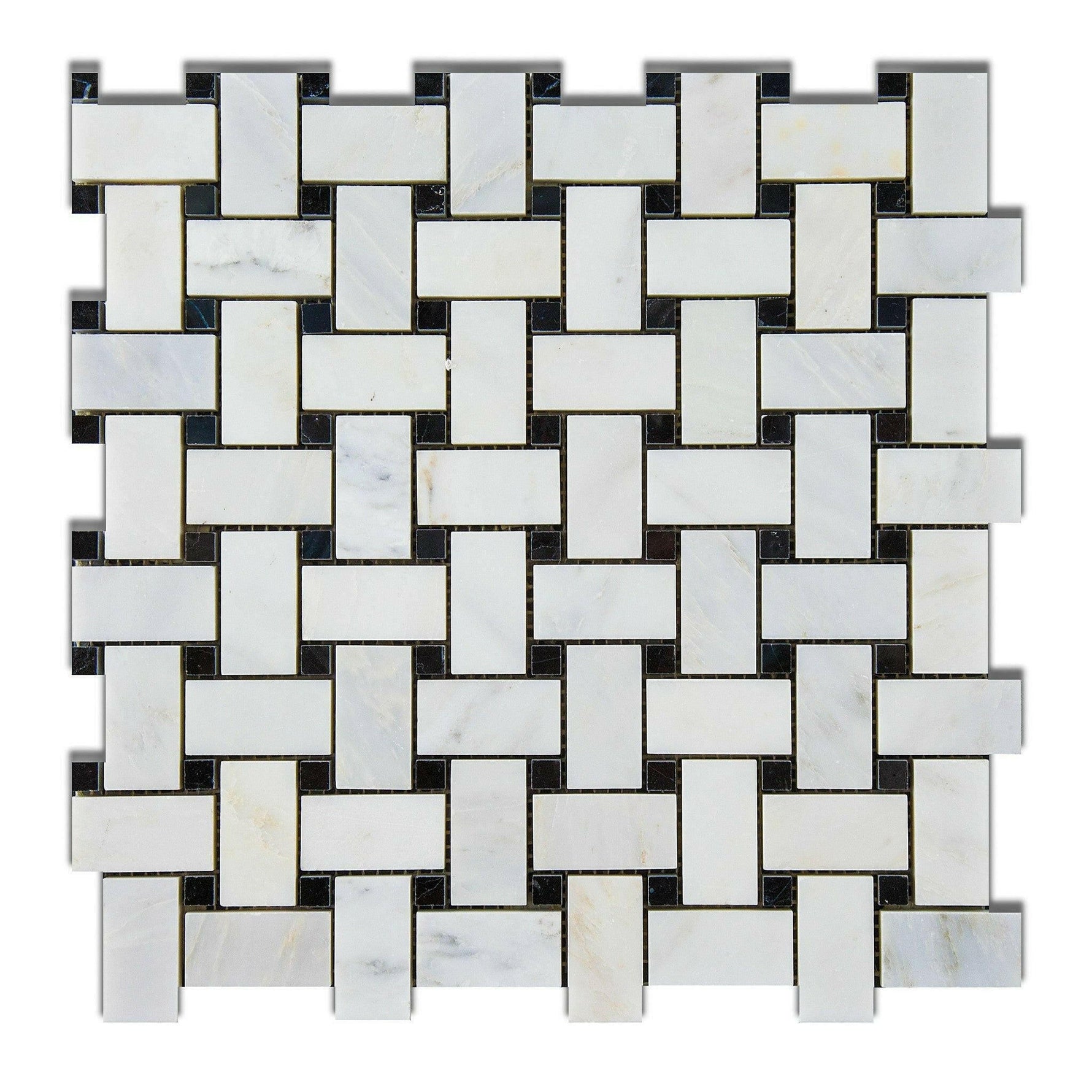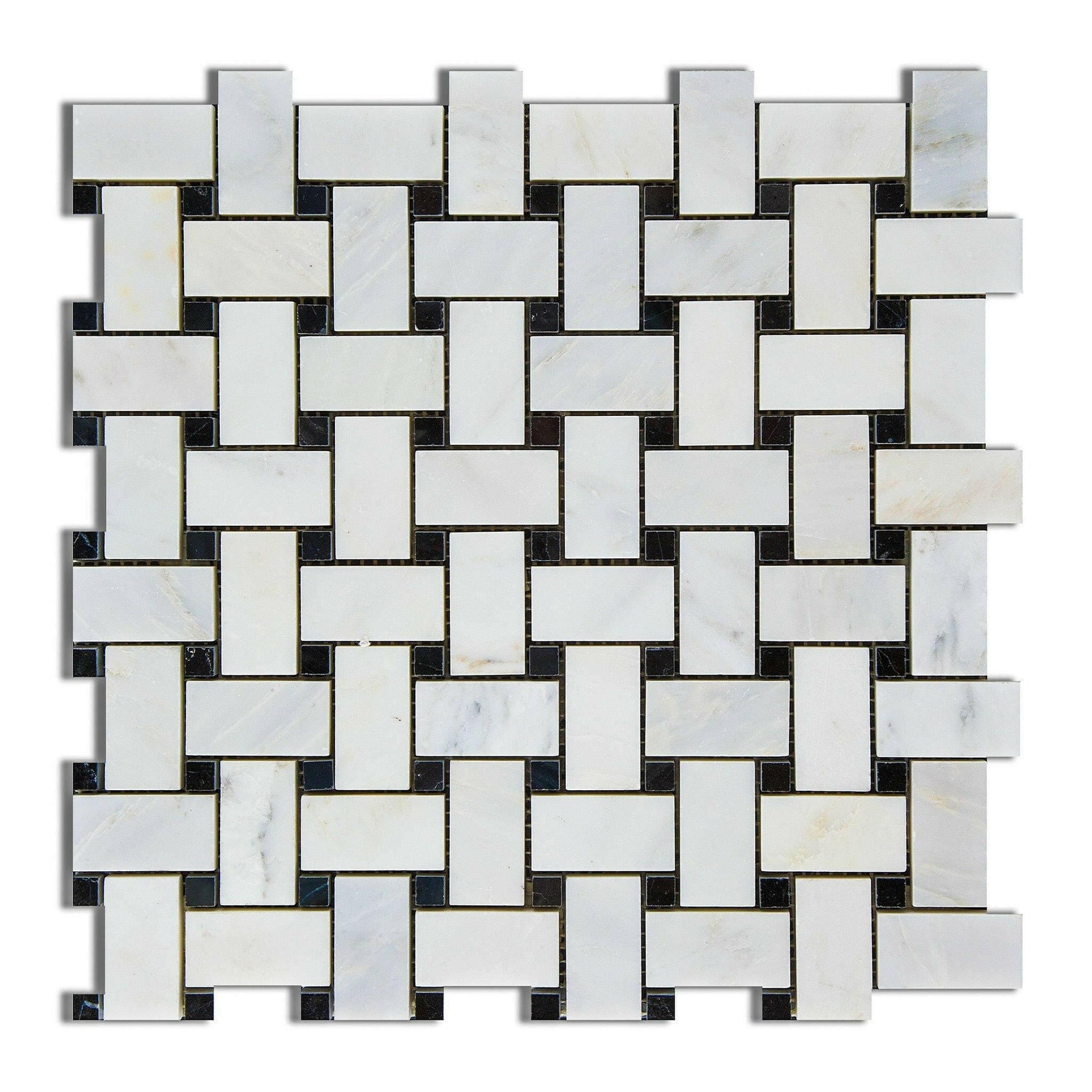 Premium Quality ORIENTAL WHITE / ASIAN STATUAR MARBLE HONED BASKET WEAVE MOSAIC TILE w/ BLACK DOTS