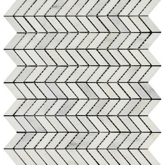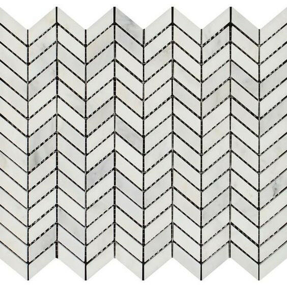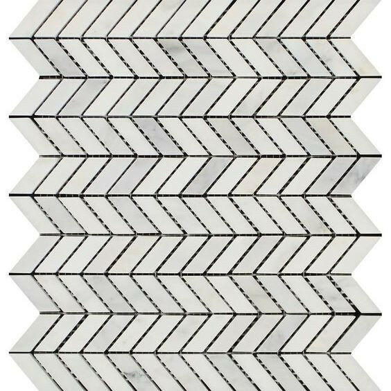 Premium Quality ORIENTAL WHITE / ASIAN STATUARY MARBLE HONED MINI CHEVRON MOSAIC TILE