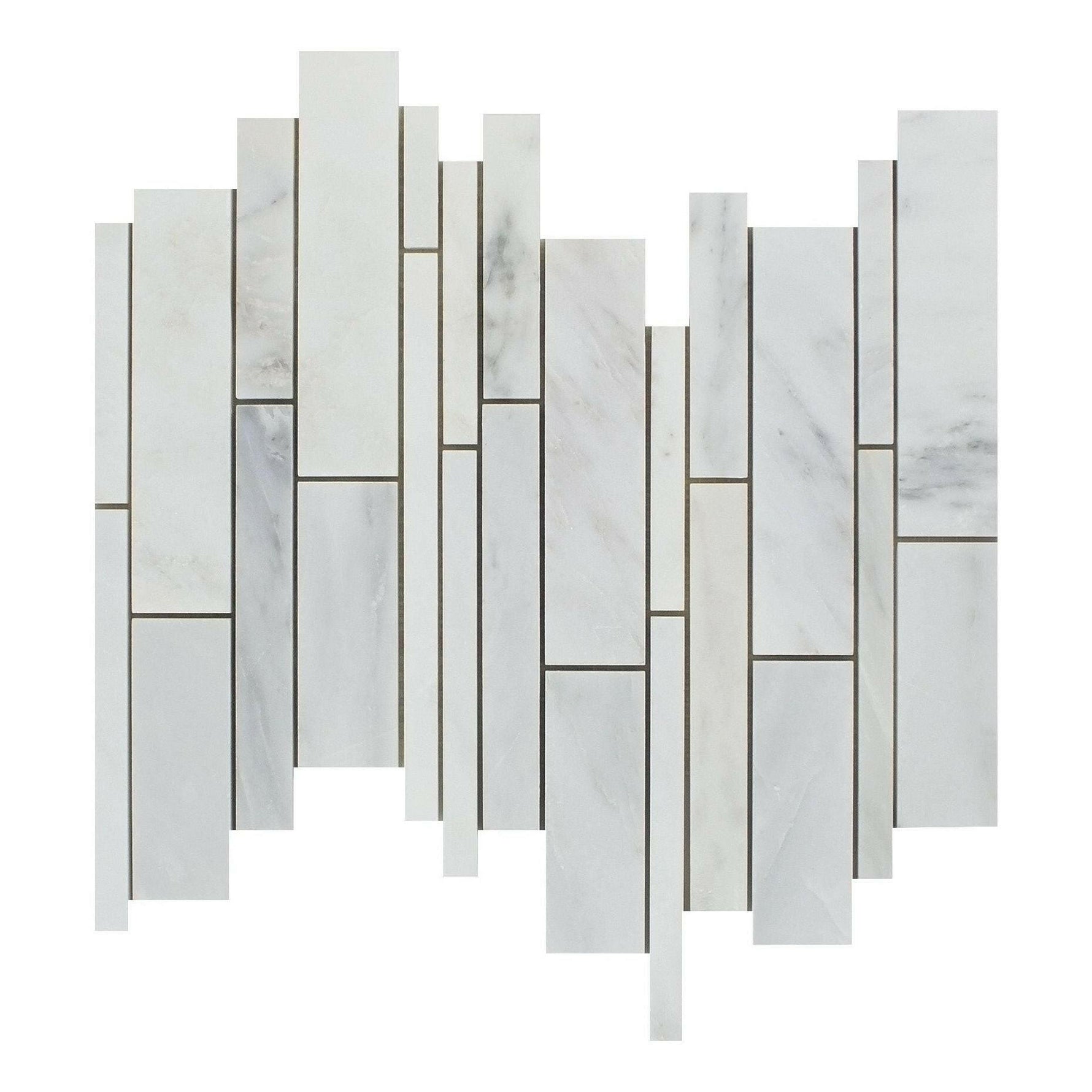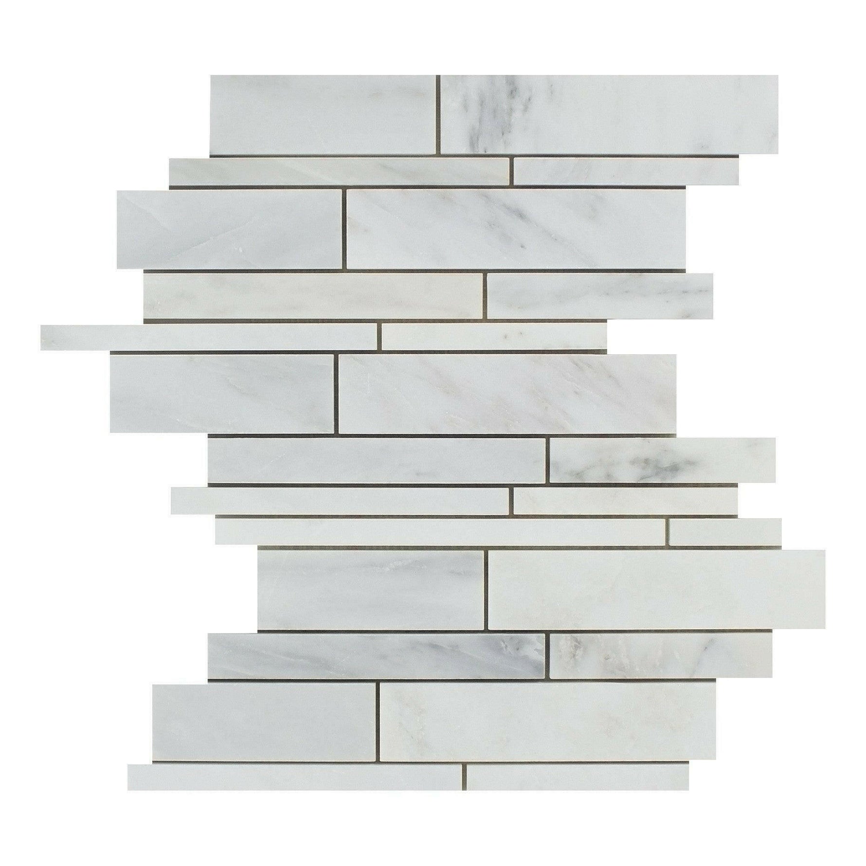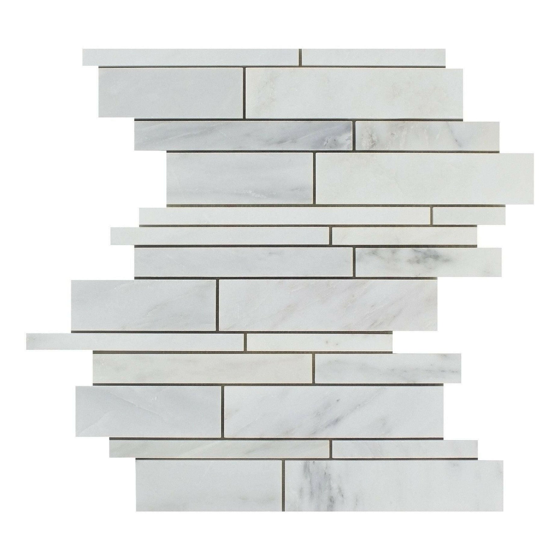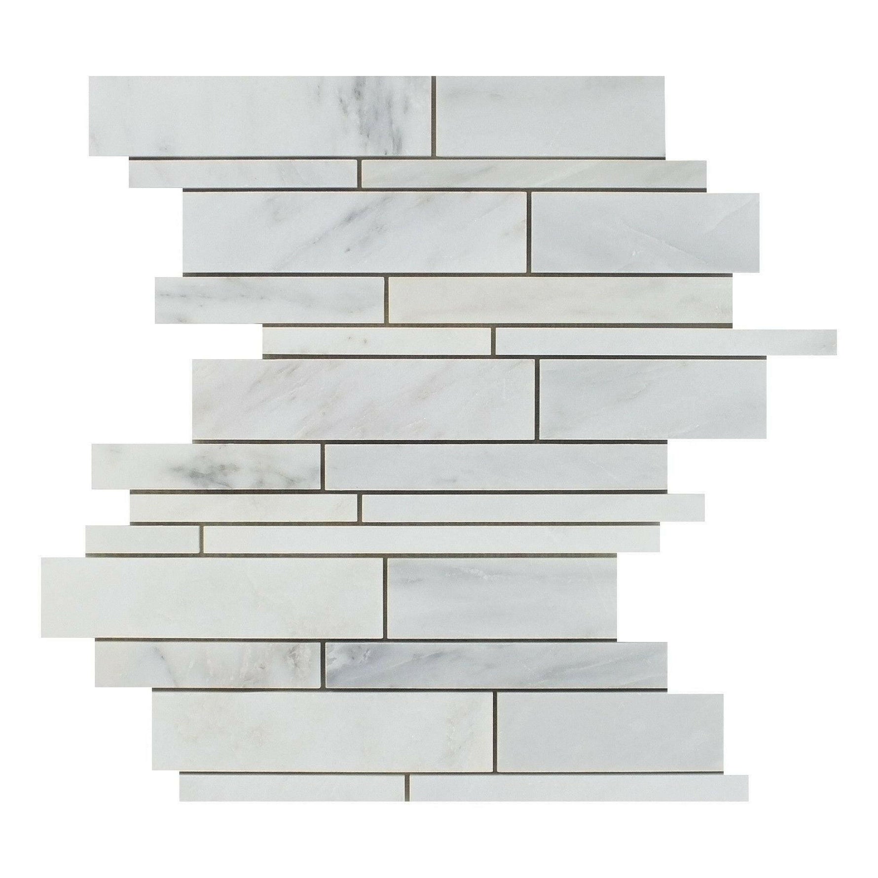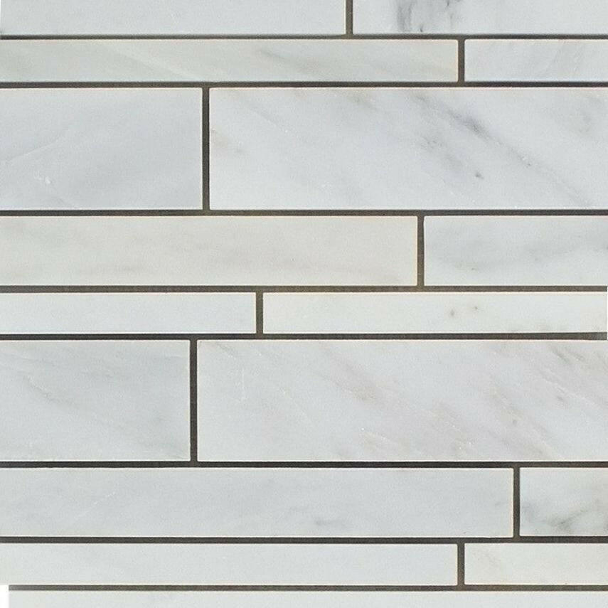 Premium Quality ORIENTAL WHITE / ASIAN STATUARY MARBLE HONED RANDOM STRIP (MANHATTAN) MOSAIC TILE