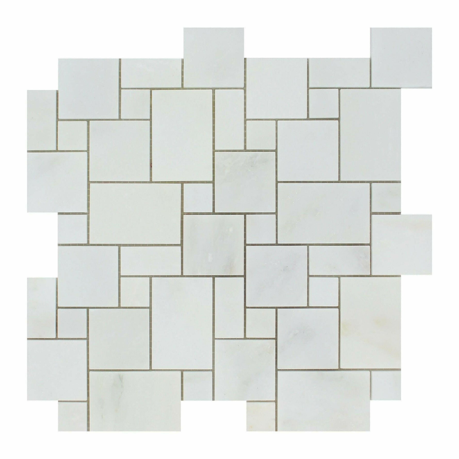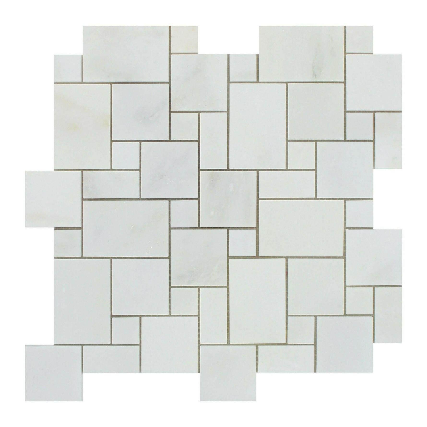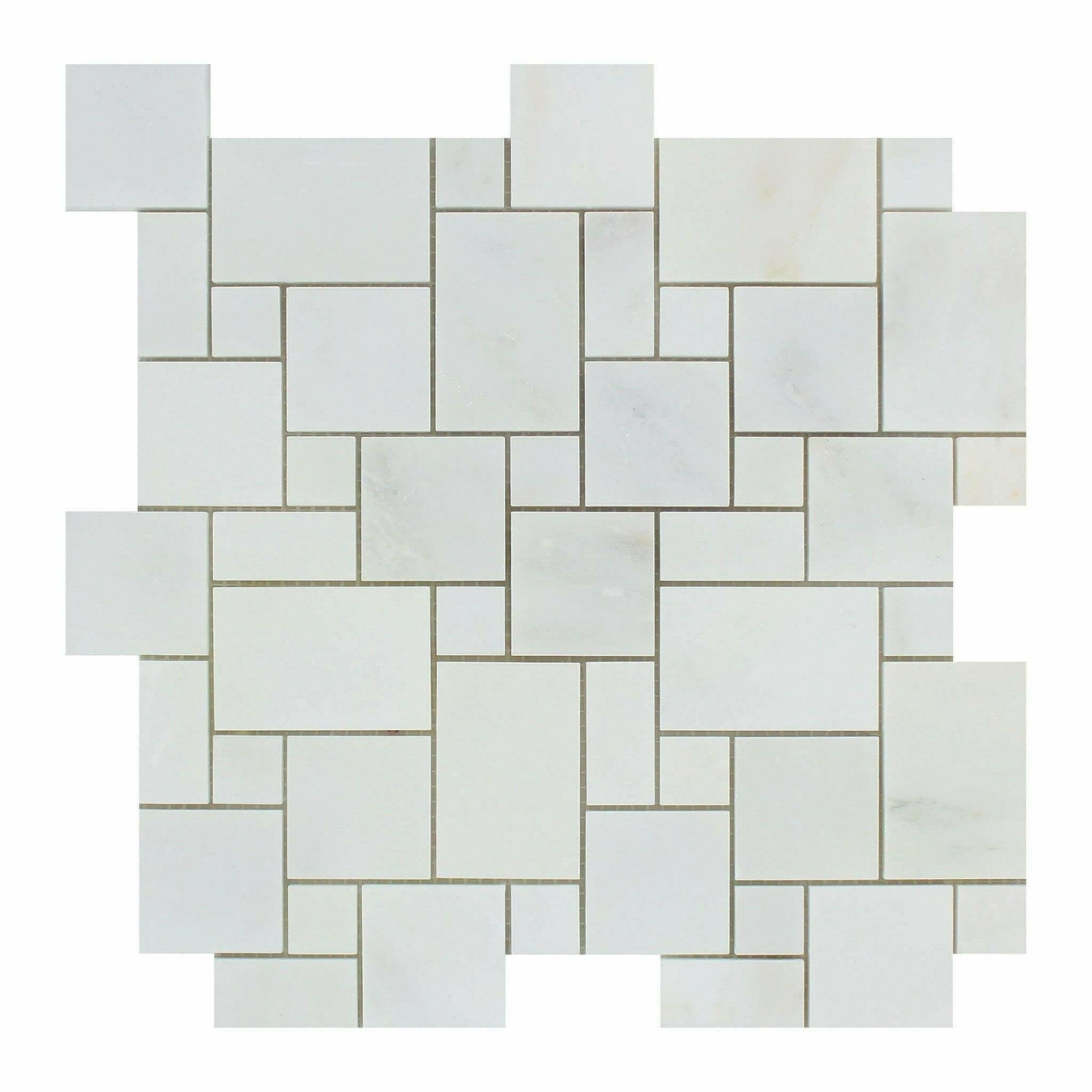 Oriental White / Asian Statuary Marble Polished Mini Versailles Mosaic Tile
