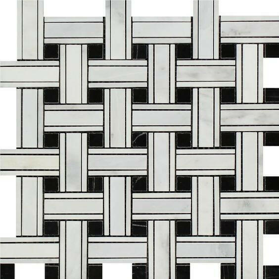 Premium Quality ORIENTAL WHITE / ASIAN STATUARY MARBLE POLISHED TRIPLE WEAVE MOSAIC TILE w / BLACK DOTS