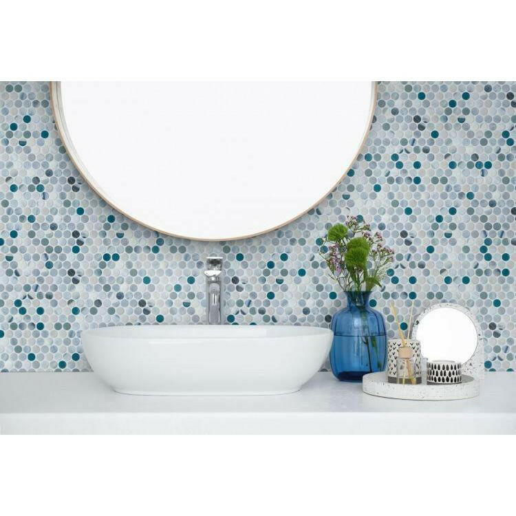 Phoenix Penny Grey Circular Glass Mosaic Tile