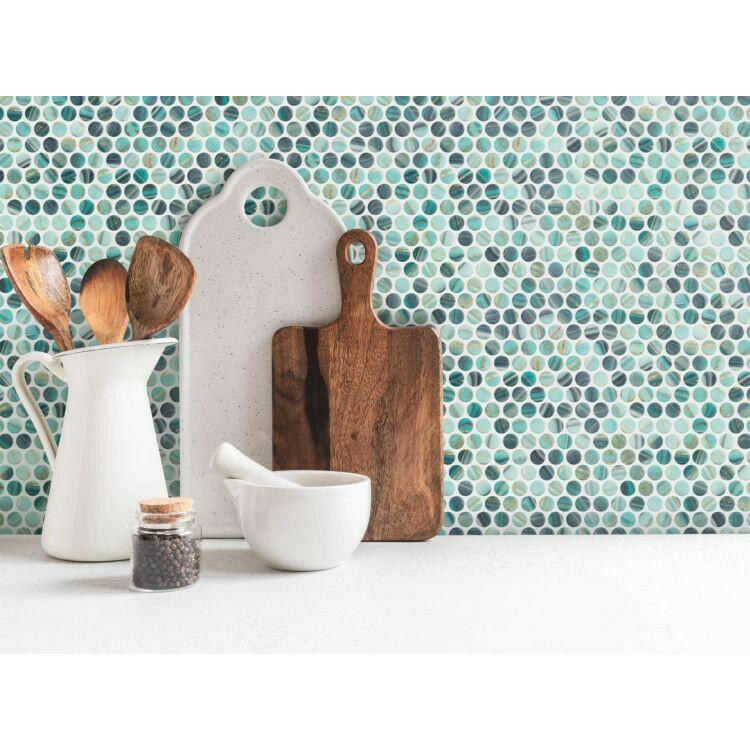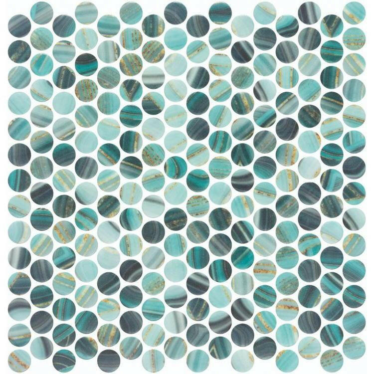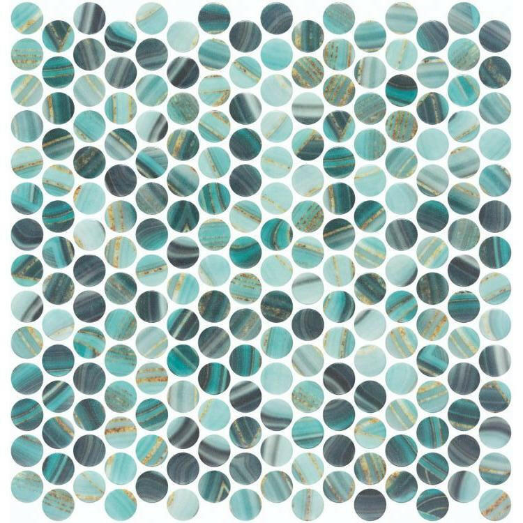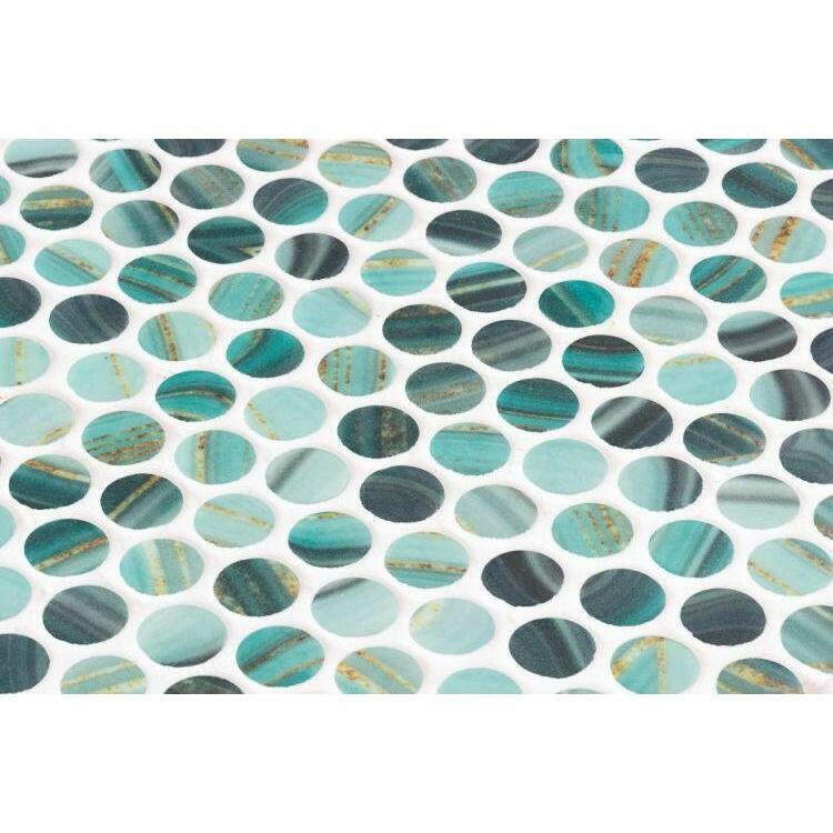Phoenix Penny Teal Polished Circular Glass Mosaic Tile