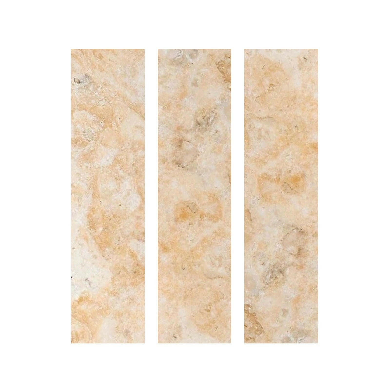 Use the 6x24 Antico Onyx Travertine Filled & Polished Tile to add shine and warmth to your space. For example, it’s ideal for accent walls, powder rooms, or sophisticated kitchen backsplashes. Furthermore, its polished surface reflects light, creating a bright and inviting atmosphere.