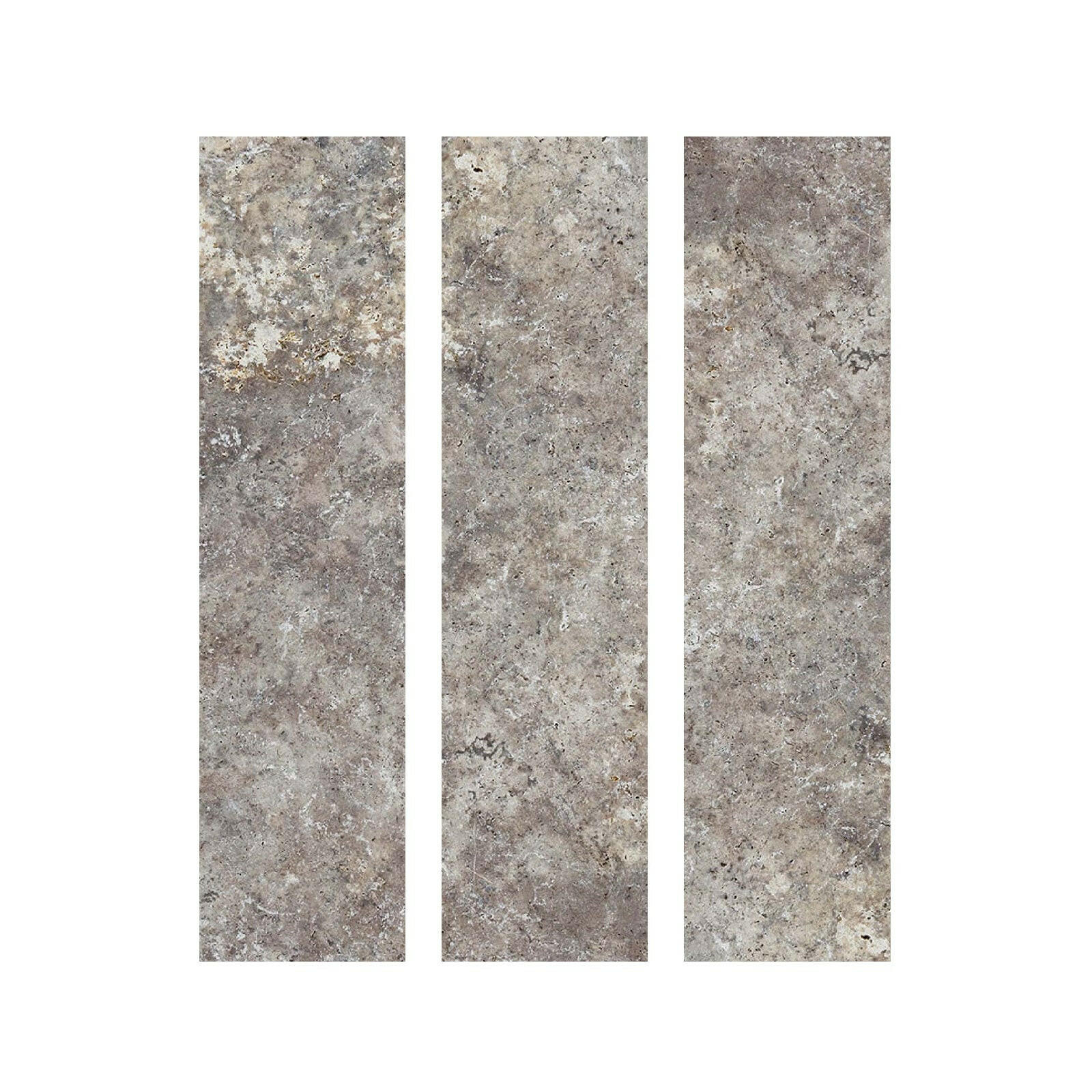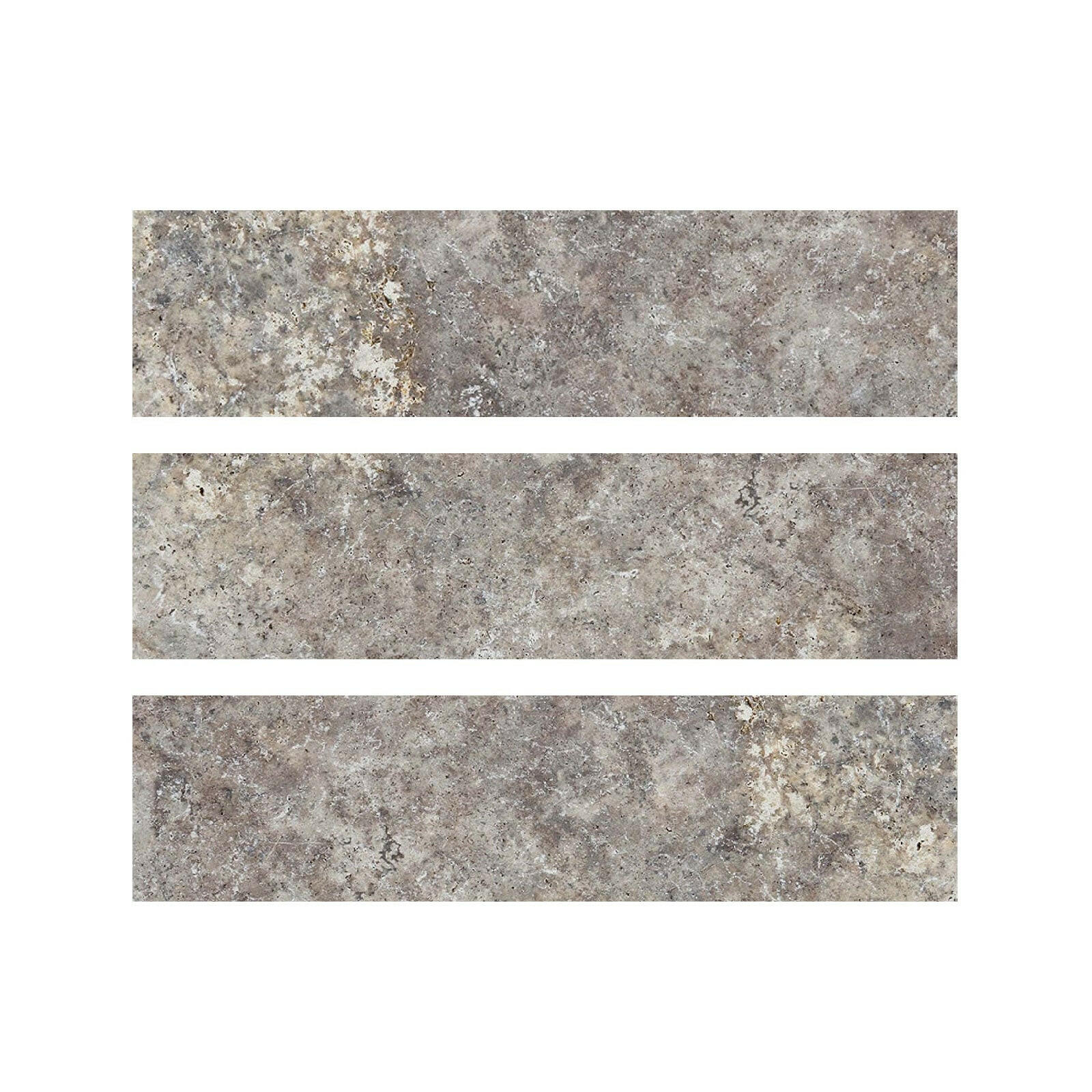 Add contemporary elegance to your space with the 6x24 Silver Travertine Filled & Honed Tile. This natural stone tile features soft gray, silver, and beige tones, blended in subtle layers for a refined, modern look. Its honed and filled surface provides a smooth, matte texture that's both stylish and comfortable.