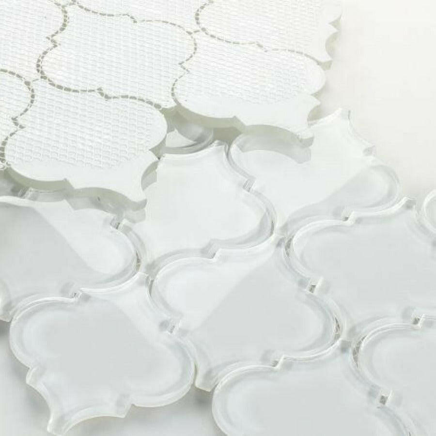 Sultan White Shining Glossy Arabesque Glass Mosaic Tile