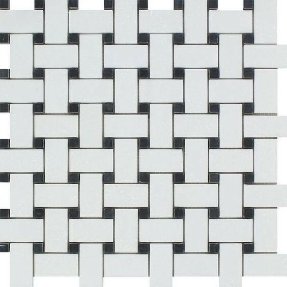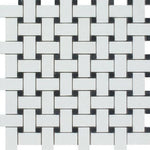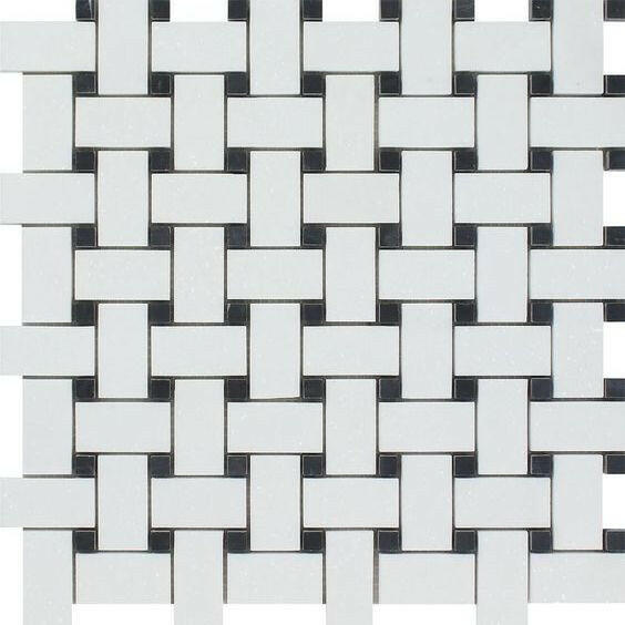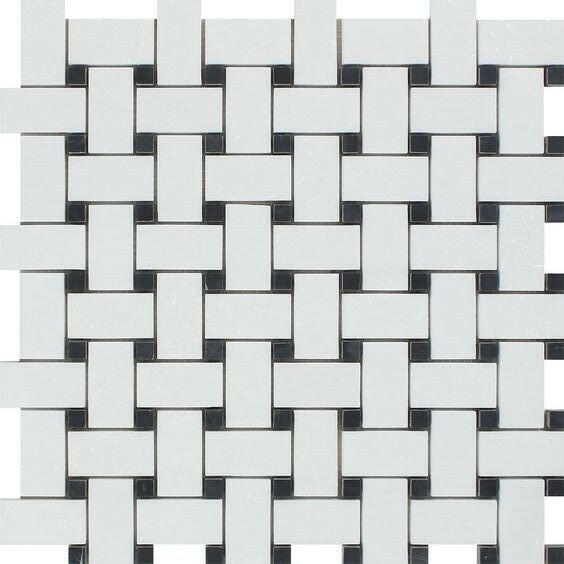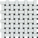 Thassos White Marble Honed Basketweave Mosaic Tile w/ Black Dots