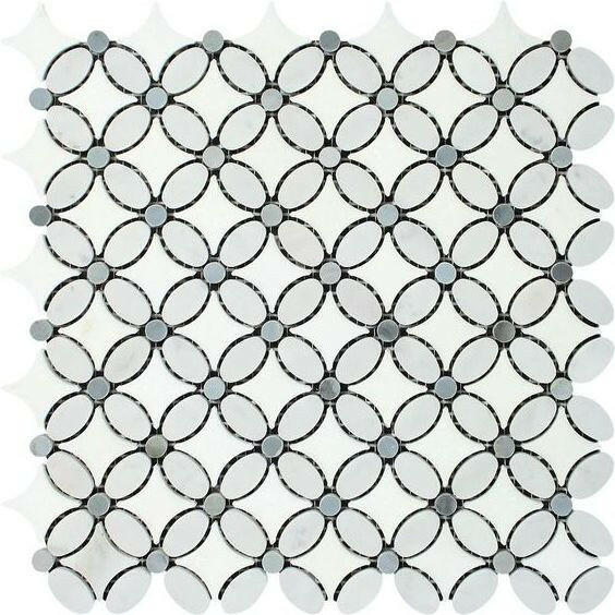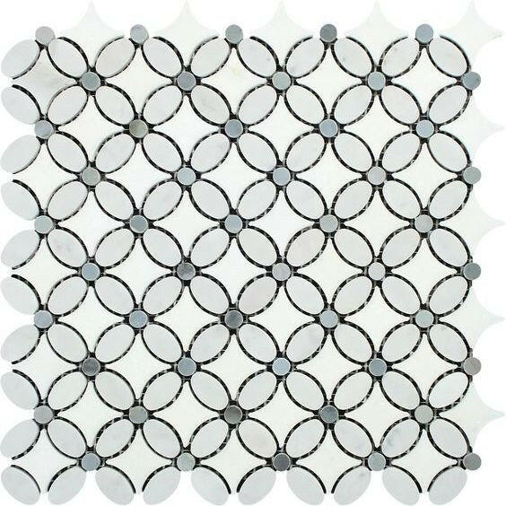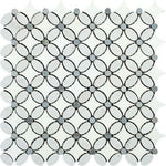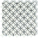 Thassos White Marble Polished Florida Flower Mosaic Tile (Thassos + White Carrara + Blue-Gray)
