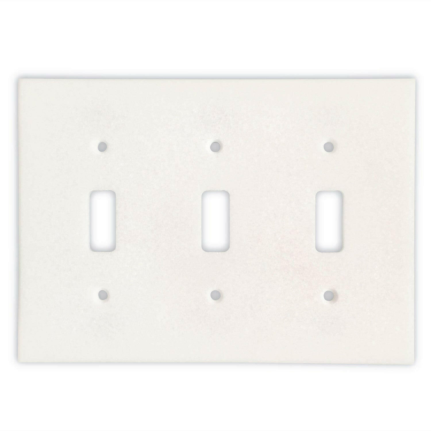 Thassos White Marble Triple Toggle Switch Wall Plate / Switch Plate / Cover - Polished - 4.5 X 6.3 INCH