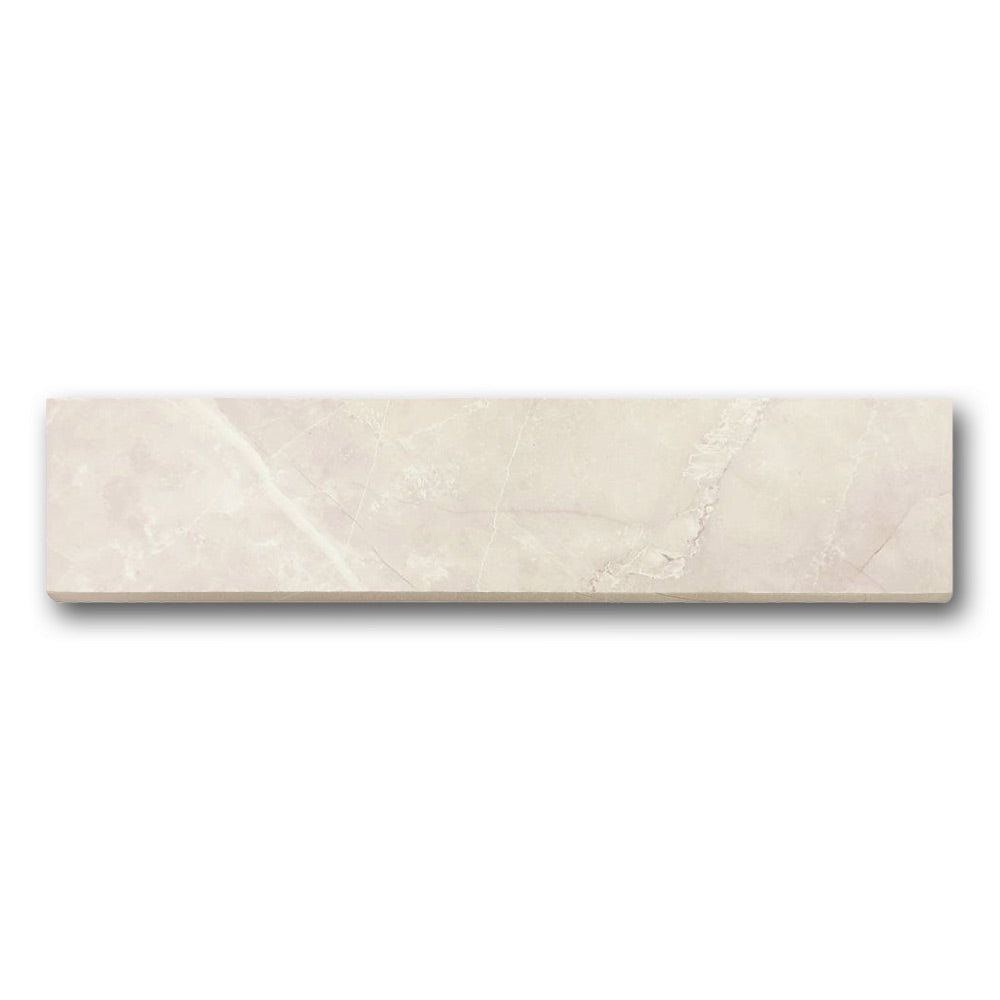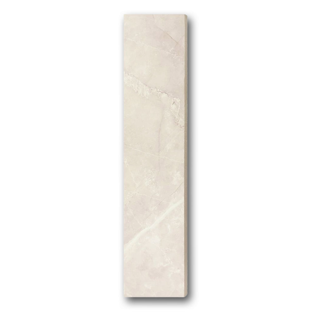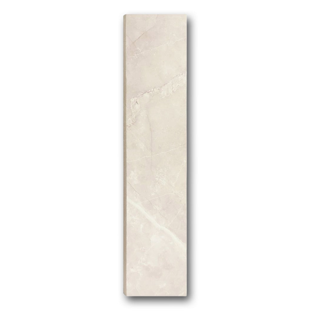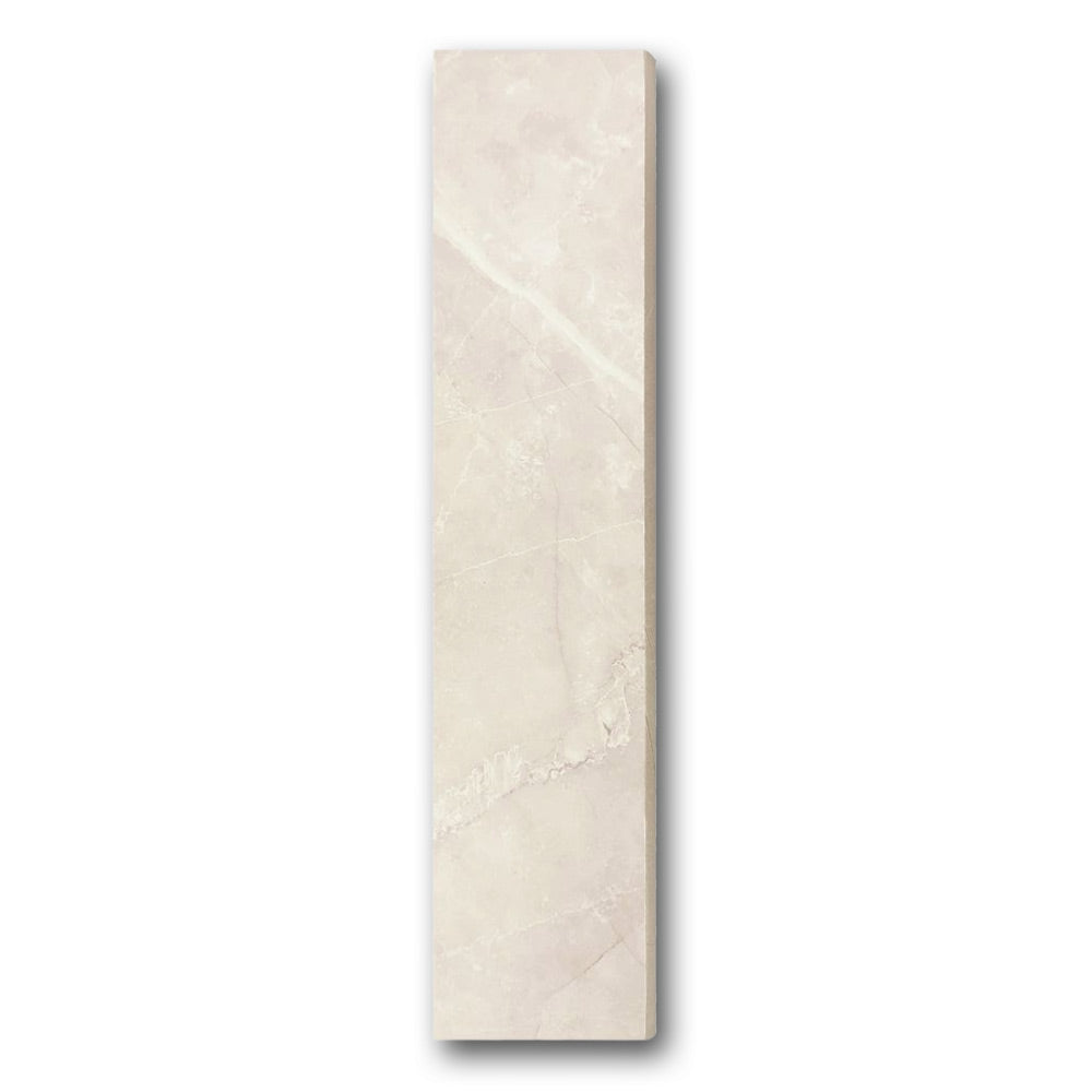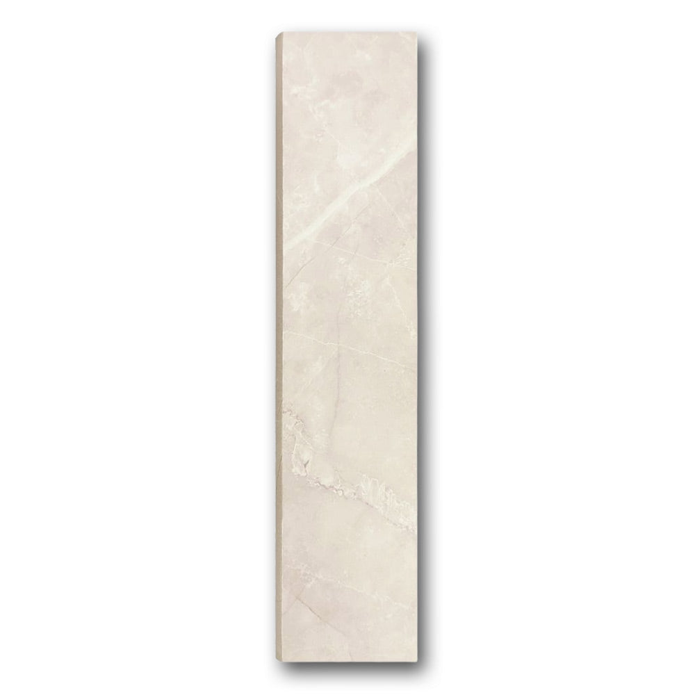 In addition, the warm neutral tone with marble-like veining pairs effortlessly with a range of tile colors. Thanks to its 3x12 size, it integrates easily with standard tile formats, which simplifies installation.