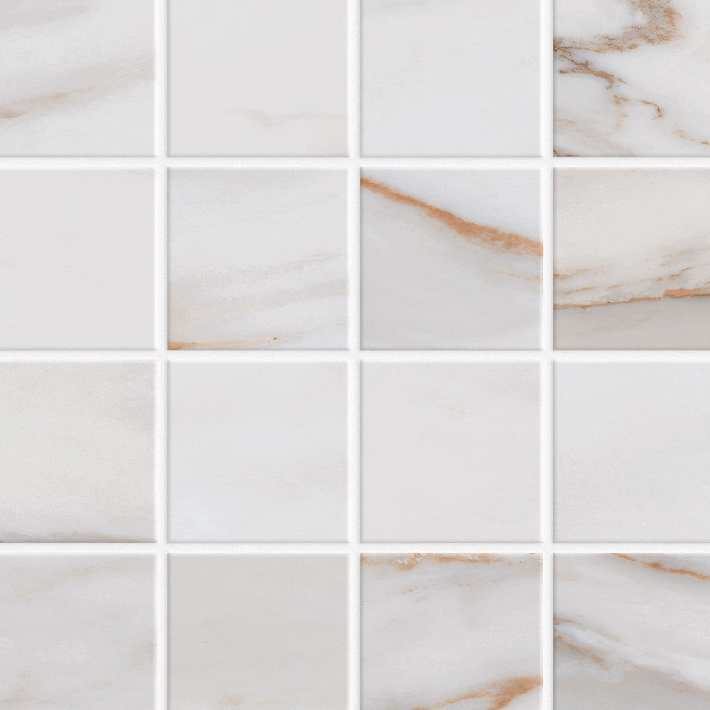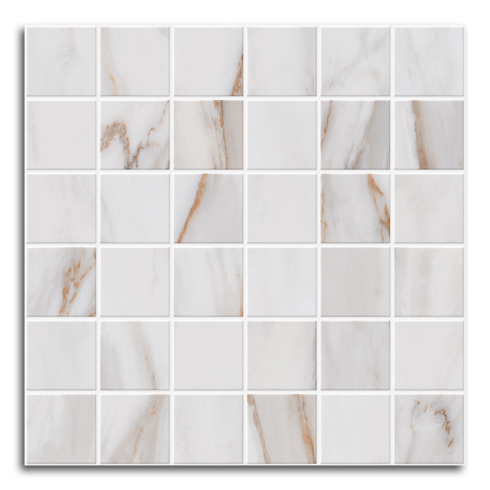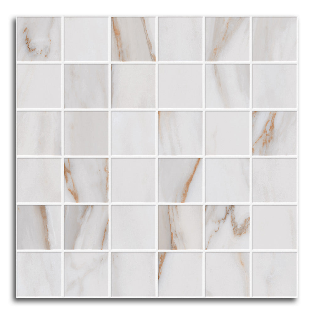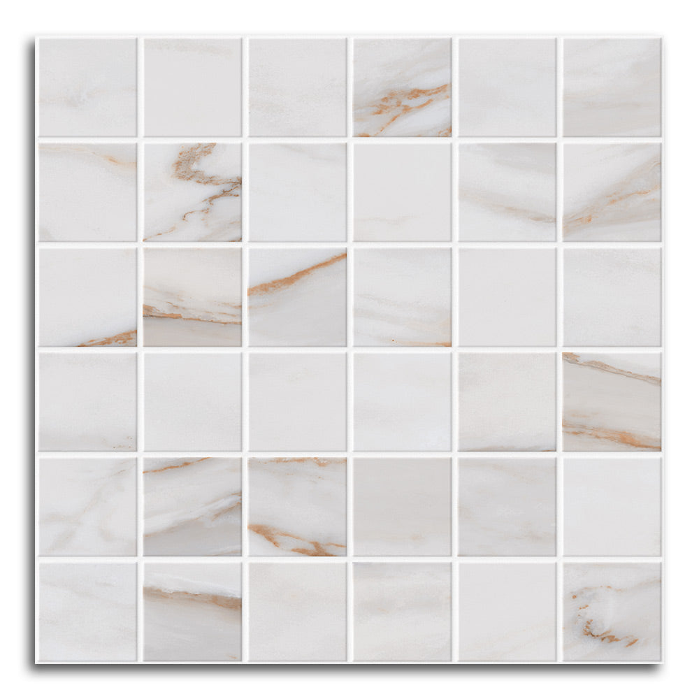Made from high-grade porcelain, this mosaic offers durability for everyday use. Each sheet features 2" x 2" tiles with rich golden hues and realistic vein patterns. These tones mirror the beauty of natural travertine, without the maintenance headaches.