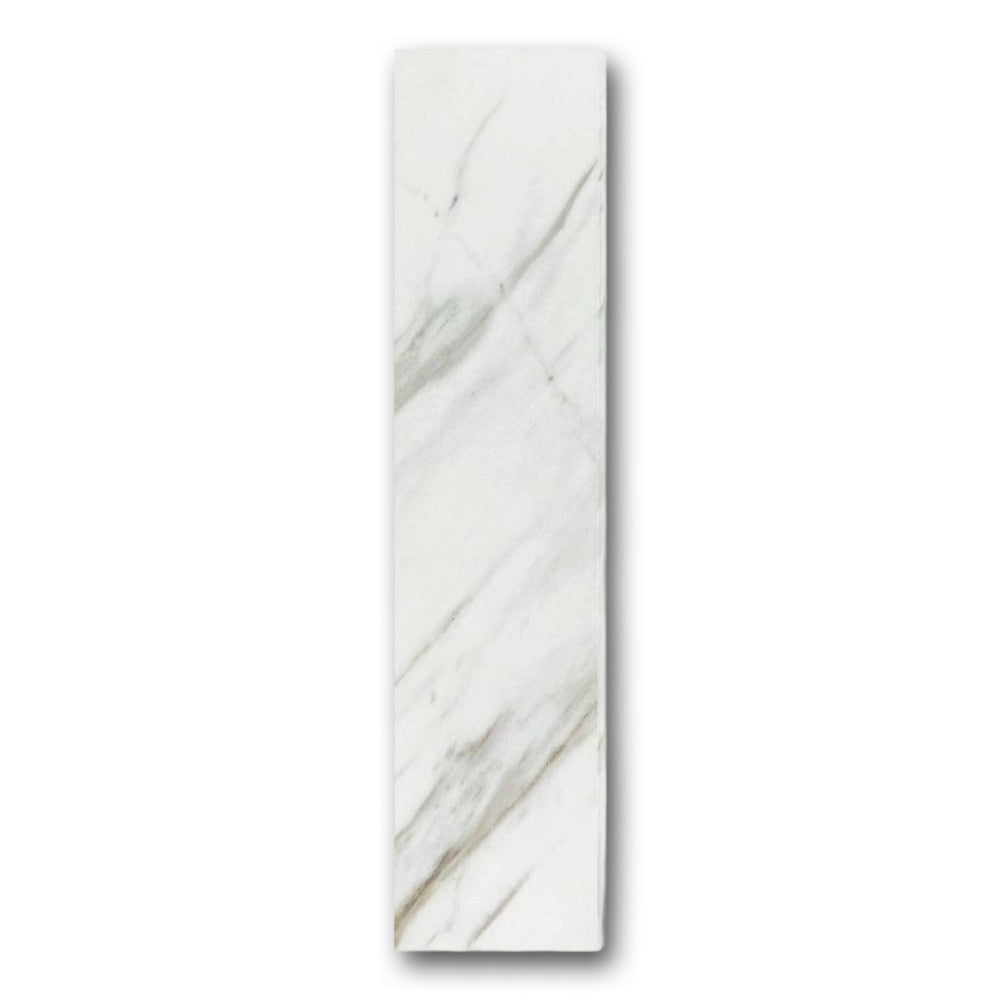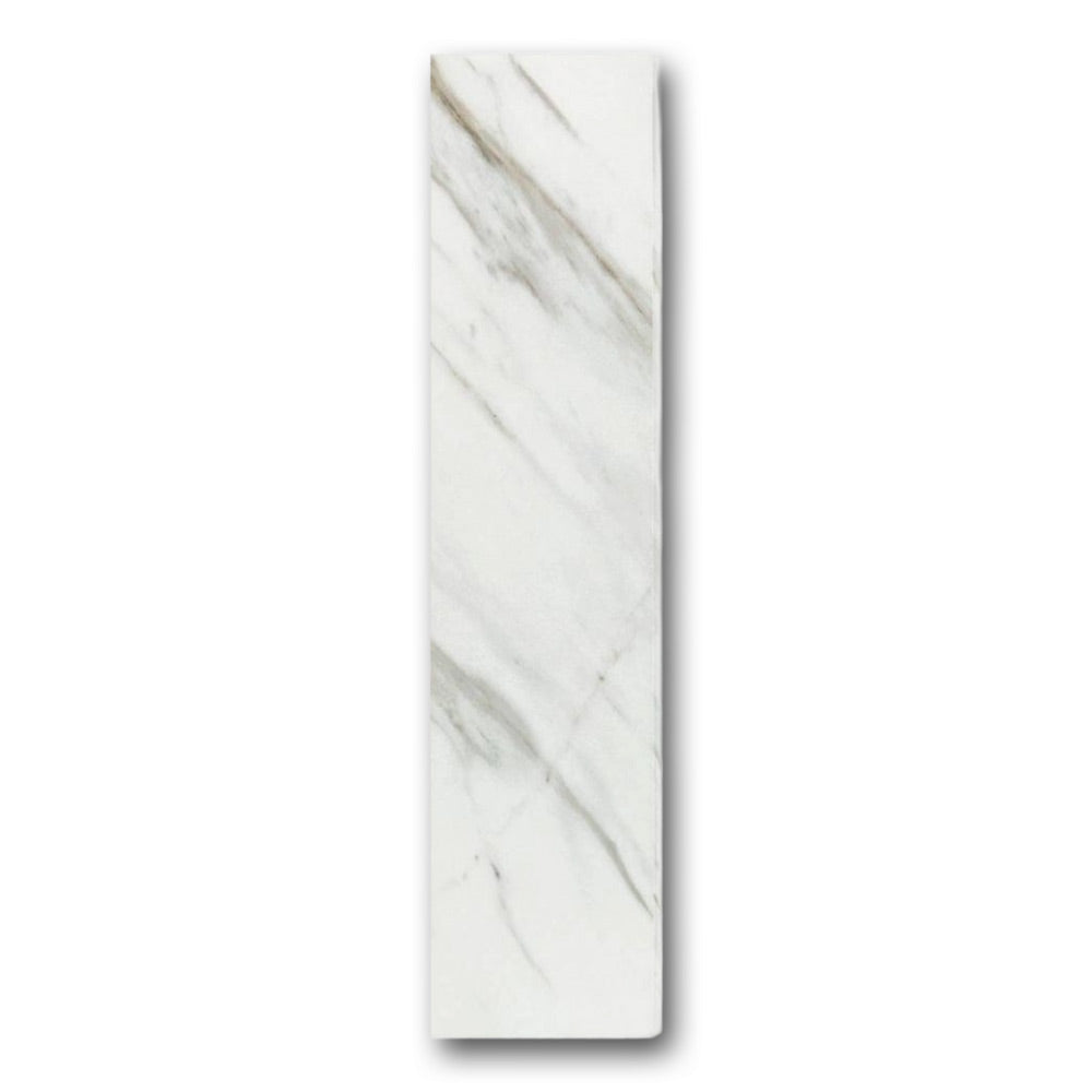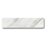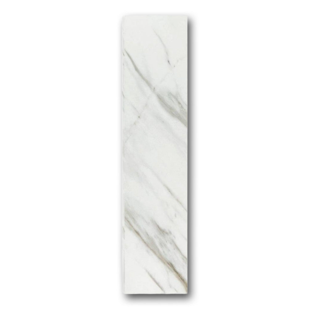 The Veina Calacatta Levigato Bullnose 3x12 Molding Trim captures the essence of natural Calacatta marble—soft white tones with flowing gray and golden veining—paired with a smooth levigato (honed-polished) finish. This blend of visual richness and smooth texture enhances the look of luxury spaces without the maintenance of real stone.