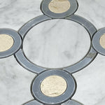 Premium (SELECT) Quality WATERJET ROUND MARBLE POLISHED (Carrara White with Blue Grey and Crema Marfil Round ) MOSAIC TILE