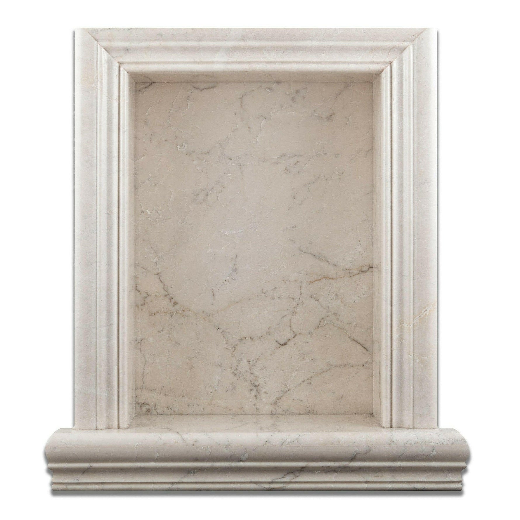 Premium Quality White Pearl / Botticino Marble Polished Hand-Made Custom Shampoo Niche / Shelf - LARGE